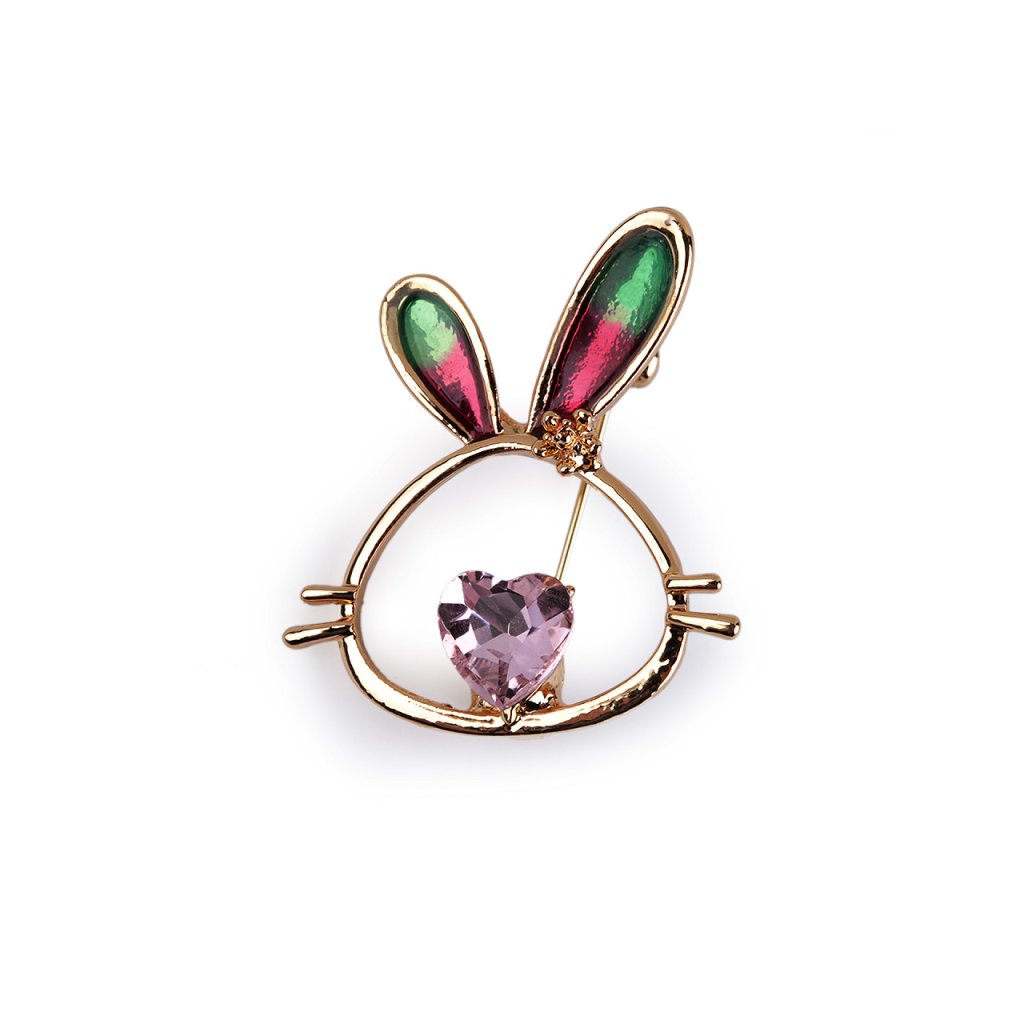 Brož zajíčka s broušeným srdíčkem a barevným smaltem vás okouzlí svou duhovou hrou barev a hravým designem. Vsazené broušené srdce se nádherně třpytí. Brož je velice milá a originální, můžete ji využít na běžné nošení i na společenské události - večírky, oslavy apod. Z rubu má brožový špendlík. Můžete ji nosit nejen na oděvech, hodí se i k ozdobení klobouků, tašky či sepnutí šátku.