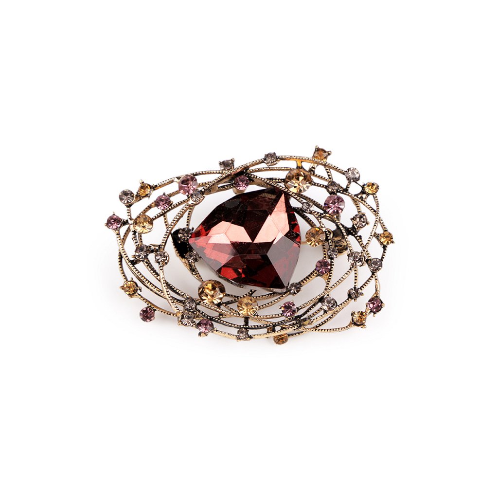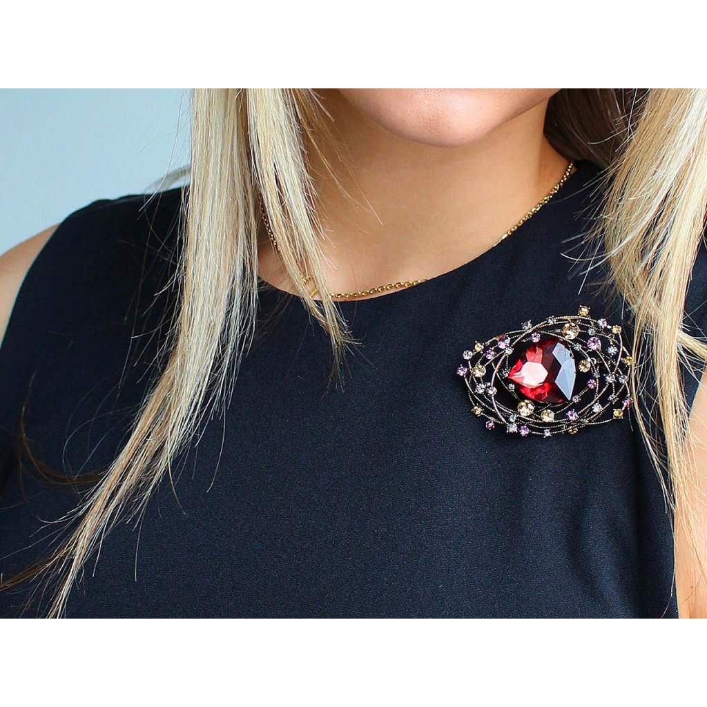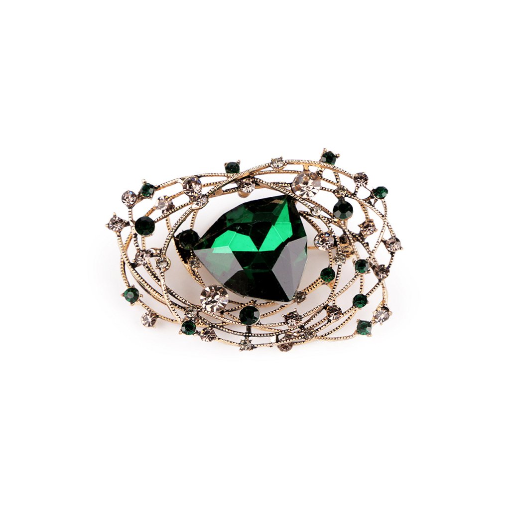 Elegantní brož s velkým kamenem je výrazný módní doplněk, který okamžitě upoutá pozornost svou zářivostí a luxusním vzhledem. Její kovový základ je osázený dalšími broušenými kamínky, které vytvářejí jemné odlesky při každém pohybu. Na zadní straně má brožový špendlík. Můžete ji nosit na oděvech, čepicích, kloboucích, taškách či s ní můžete sepnout šátek.