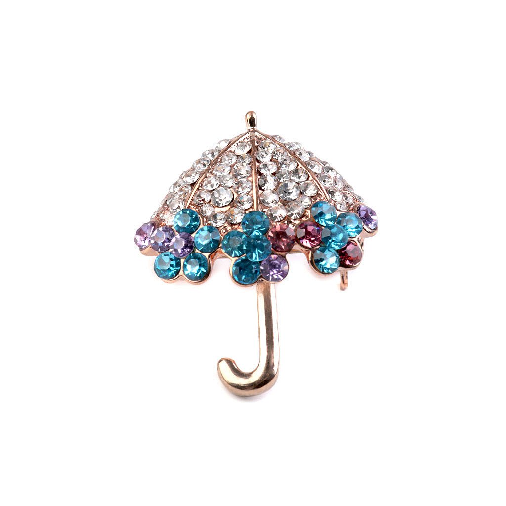 Brož č.1 - deštník - může mít různé barevné kombinace kamínků.