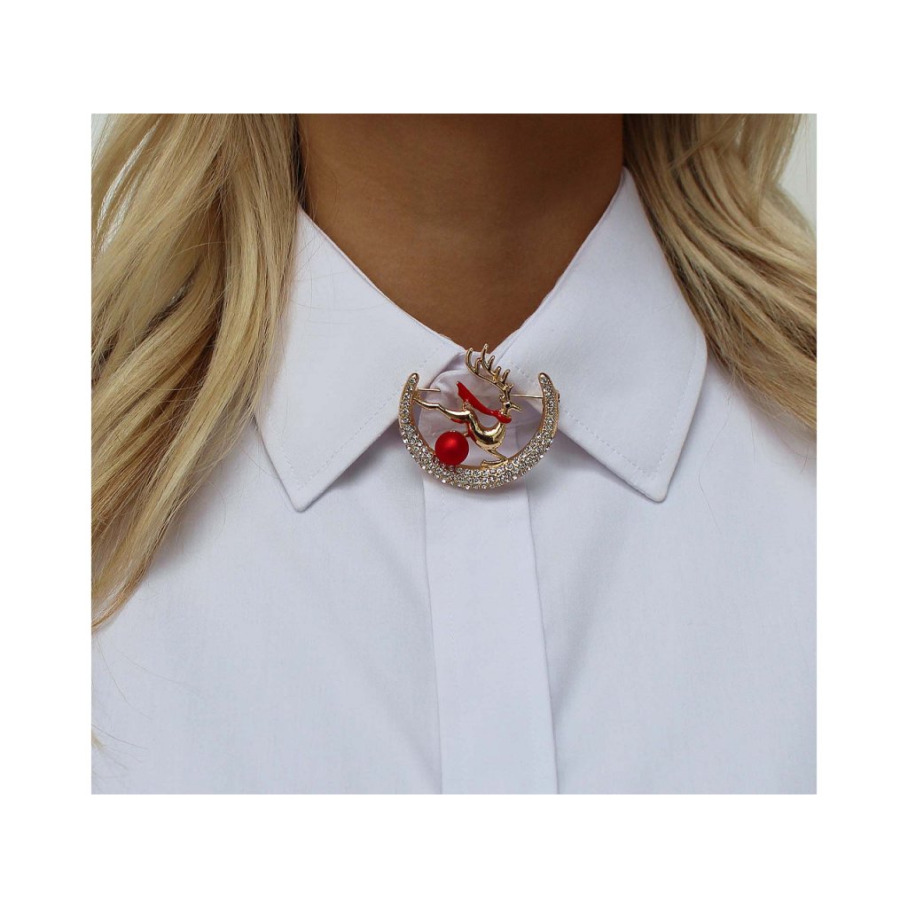 Elegantní brož s jelenem a měsícem bude perfektním doplňkem vašeho oděvu. Díky broušeným kamínkům, které se třpytí, skvěle dozdobí kabáty, saka, svetry, kabelky či čepice. Hodí se i na ozdobné sepnutí šátku.