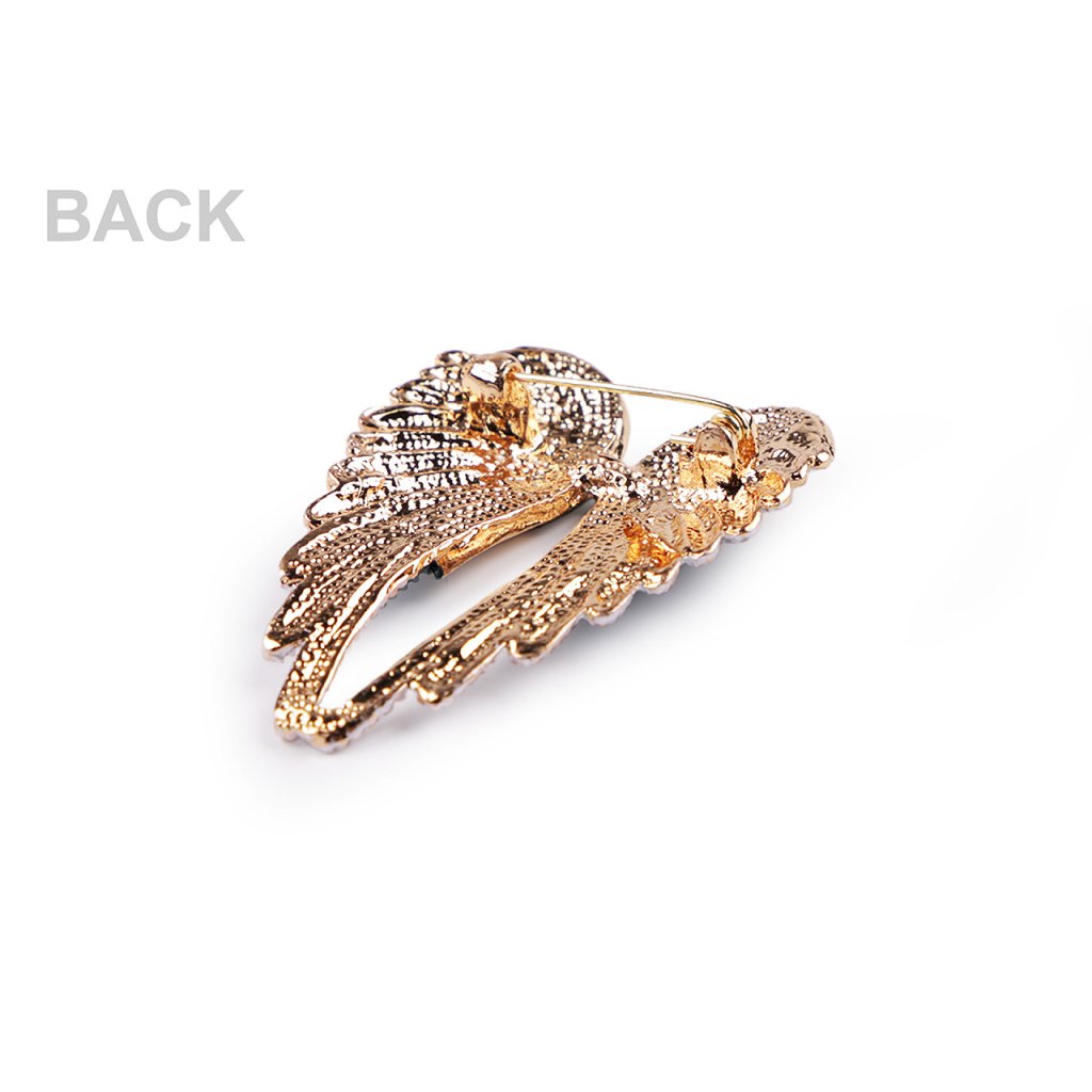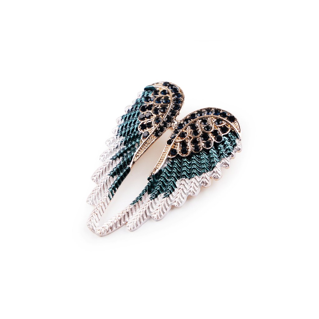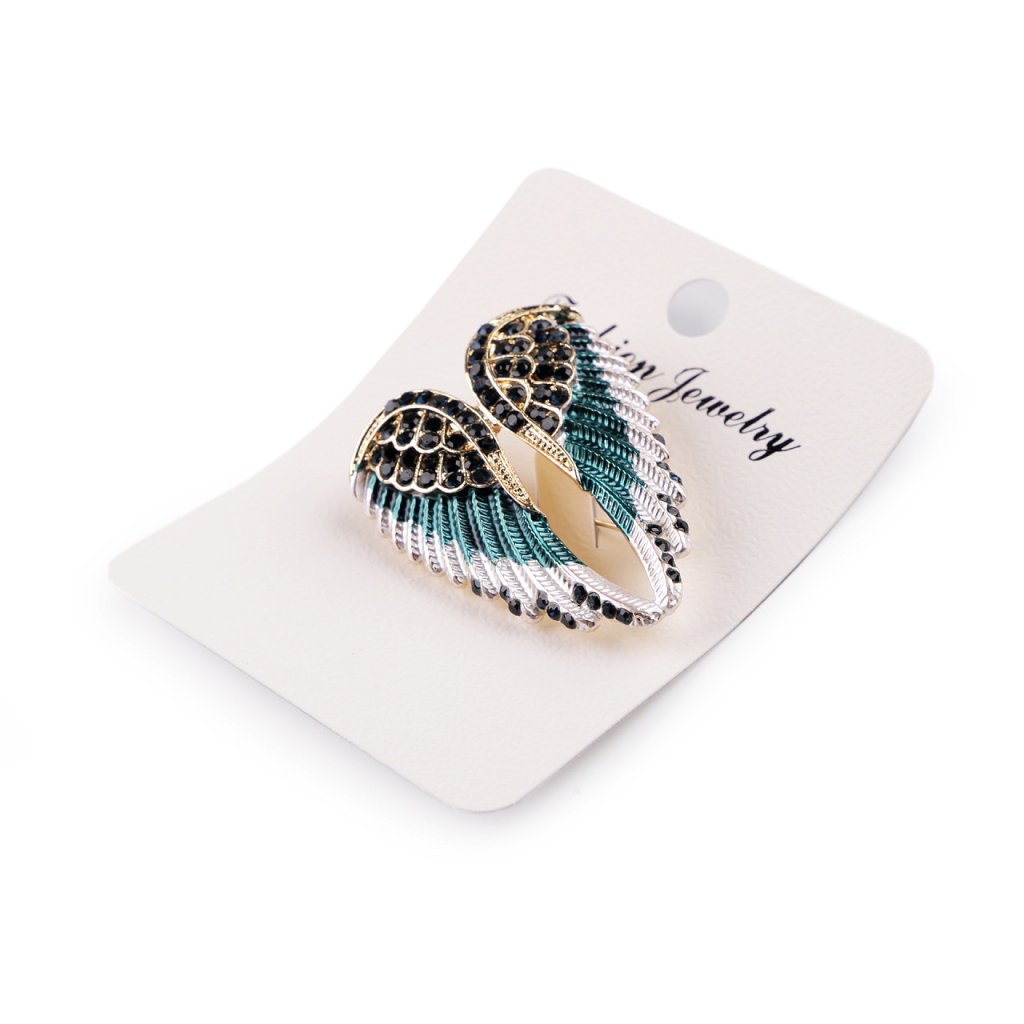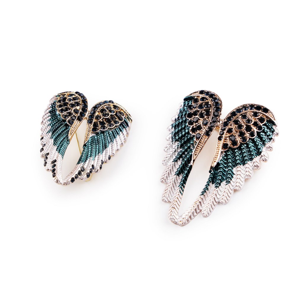 Brož křídel s barevným smaltem je velice poetická. Je ozdobená broušenými kamínky s jemným leskem, můžete ji využít na běžné nošení i na společenské události - návštěvy divadel, oslavy apod. Z rubu má brožový špendlík. Můžete ji nosit nejen na oděvech, hodí se i k ozdobení klobouků, tašky či sepnutí šátku.
