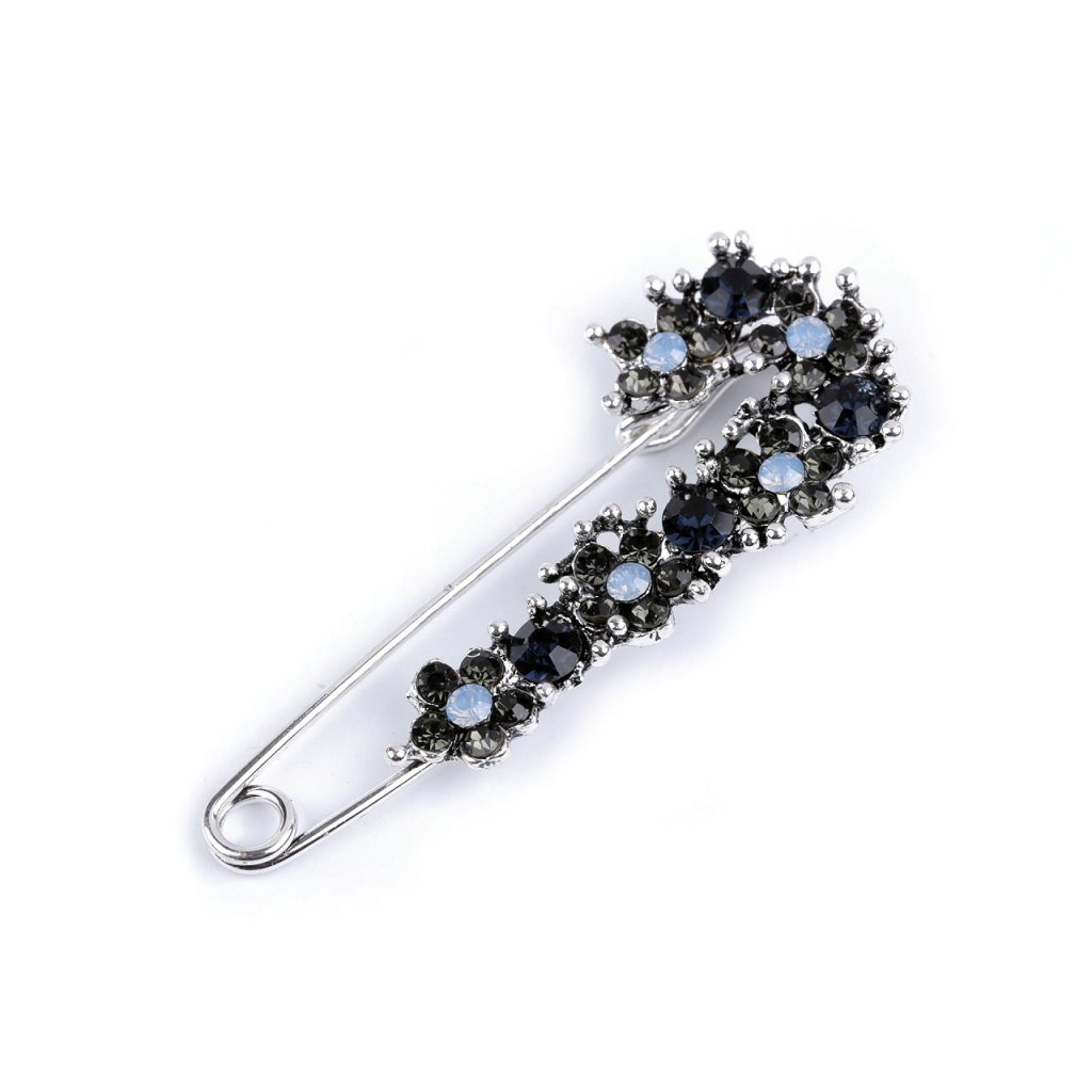 Velká elegantní brož s květy na spínacím špendlíku se díky osázení broušenými kamínky zajímavě leskne.