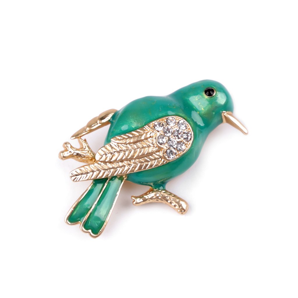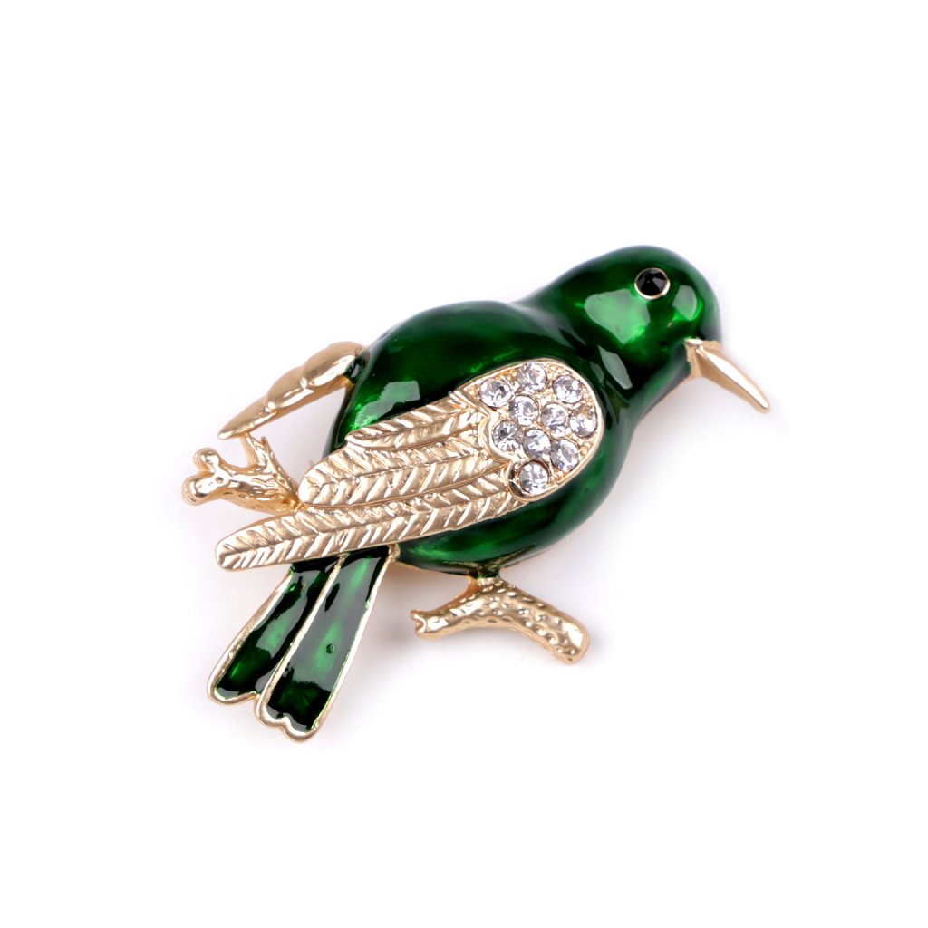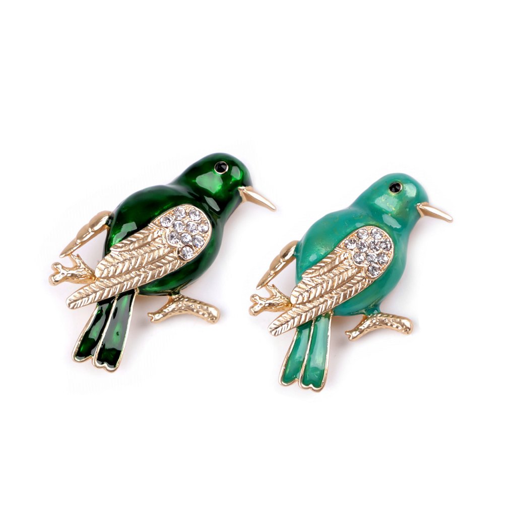 Brož ptáčka s barevným smaltem je velmi elegantní. Křídlo má detailně propracované, osázené skleněnými broušenými kamínky, jež se jemně třpytí. Využijete ji na běžné nošení i na společenské události. Z rubu má brožový špendlík. Můžete ji nosit nejen na oděvech, hodí se i k ozdobení klobouků, tašky či sepnutí šátku.