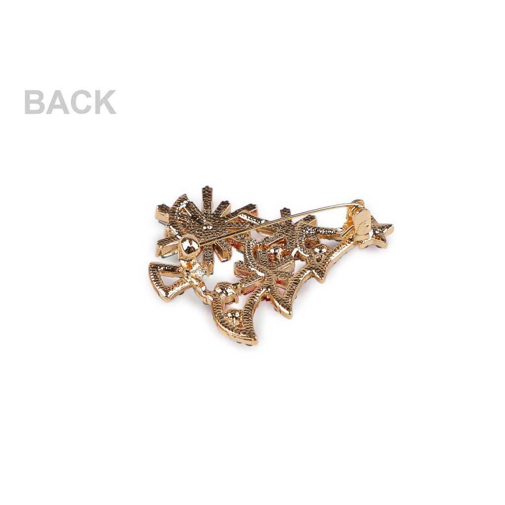 Elegantní brož je nádherným doplňkem, který okamžitě zaujme svým bohatým designem a zářícími detaily. Díky třpytivým broušeným kamínkům skvěle dozdobí kabáty, saka, svetry, kabelky či čepice.
