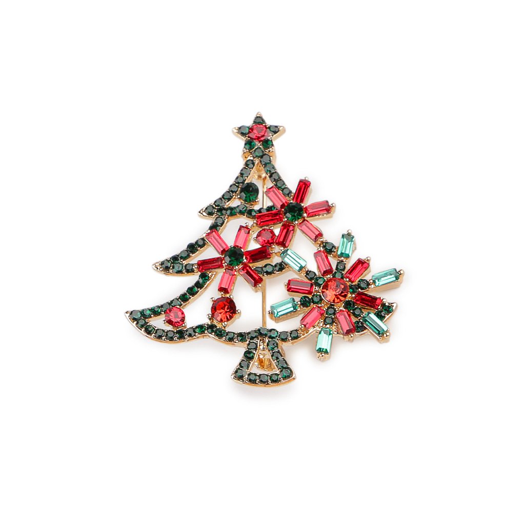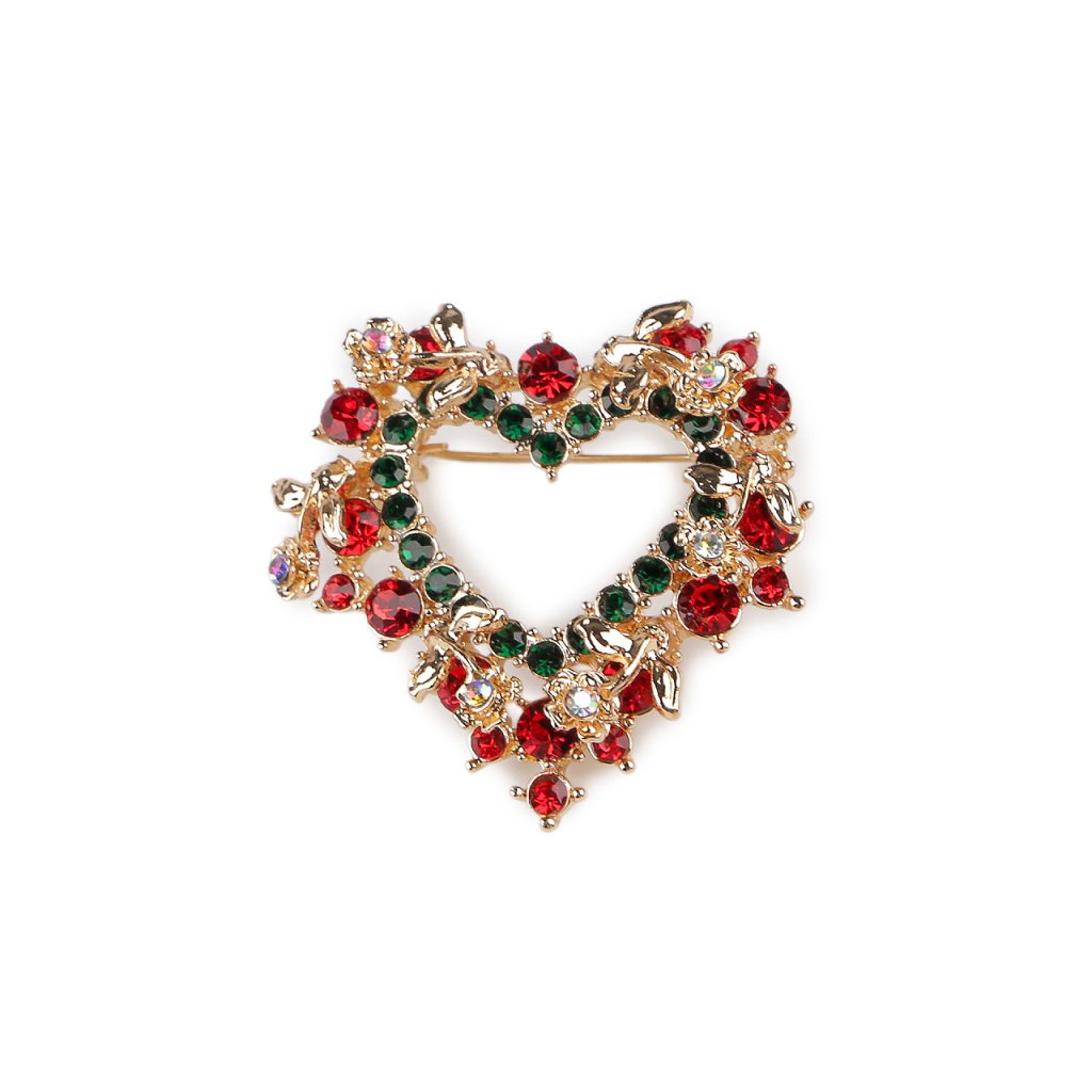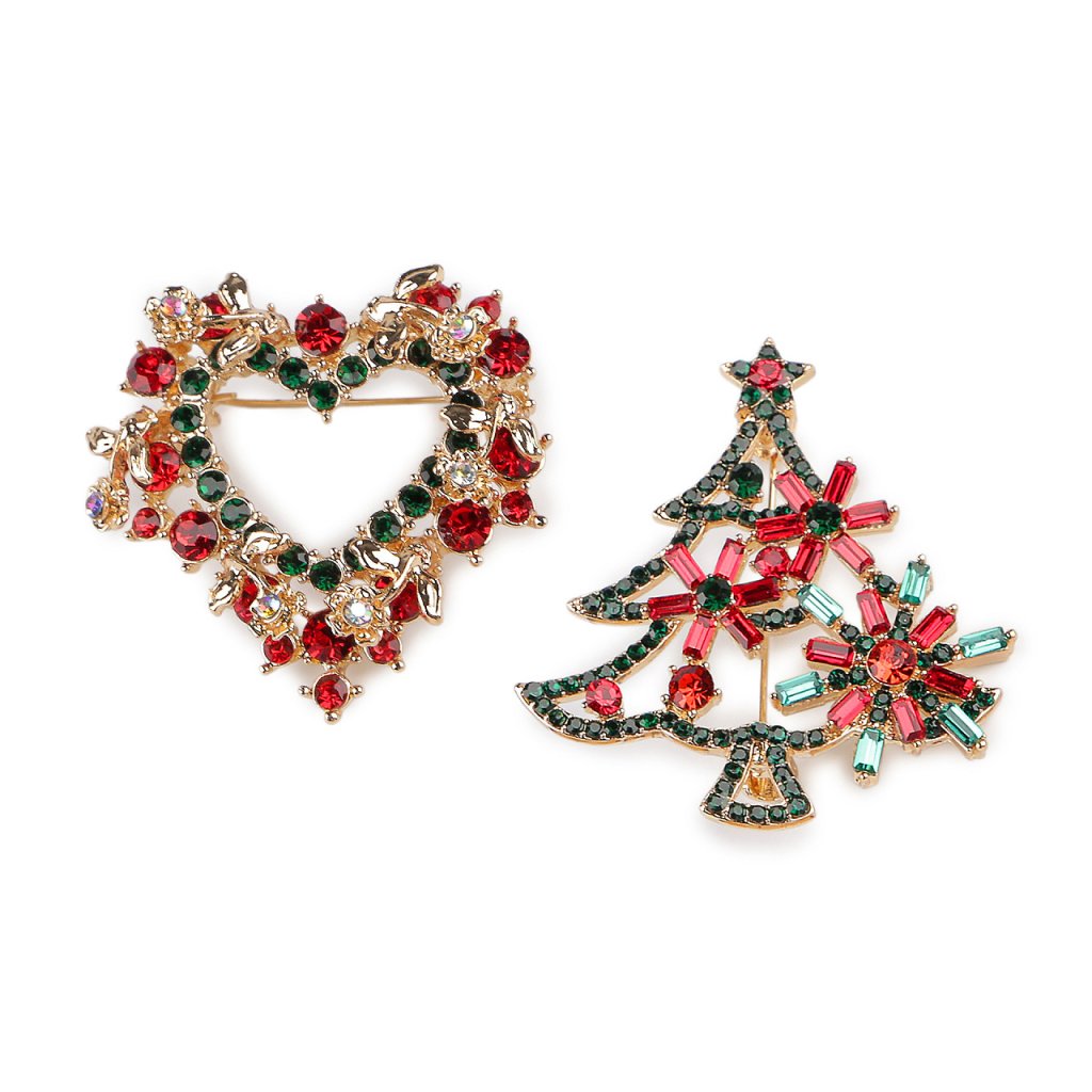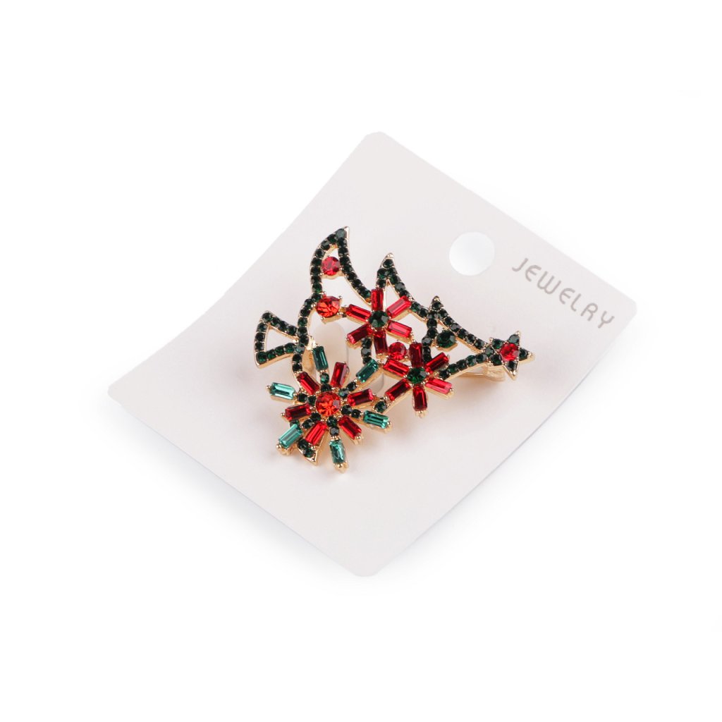 Brož s broušenými kamínky vánoční stromeček, srdce