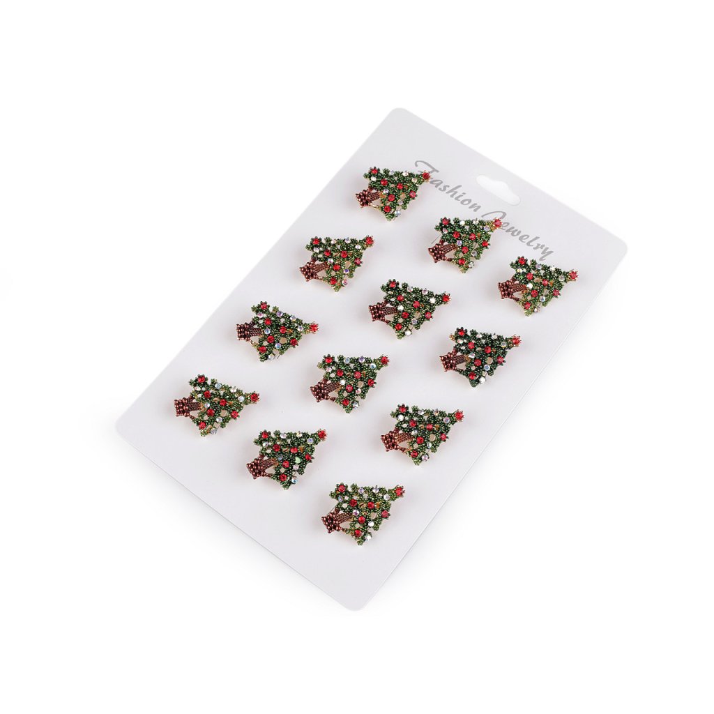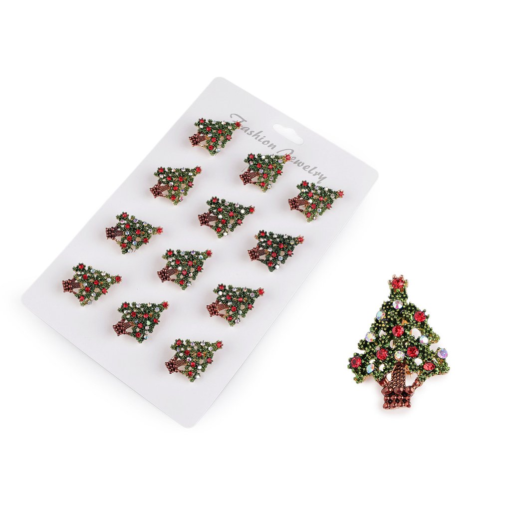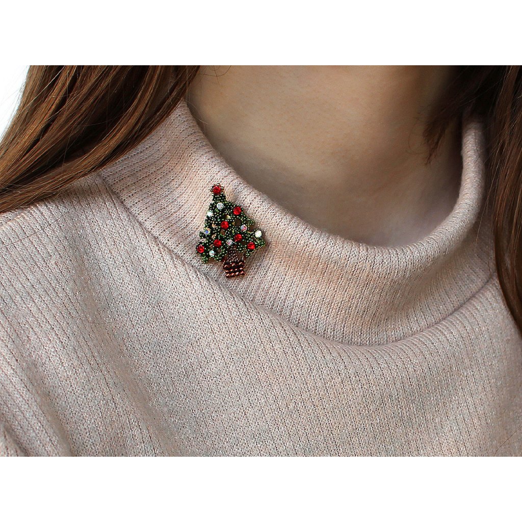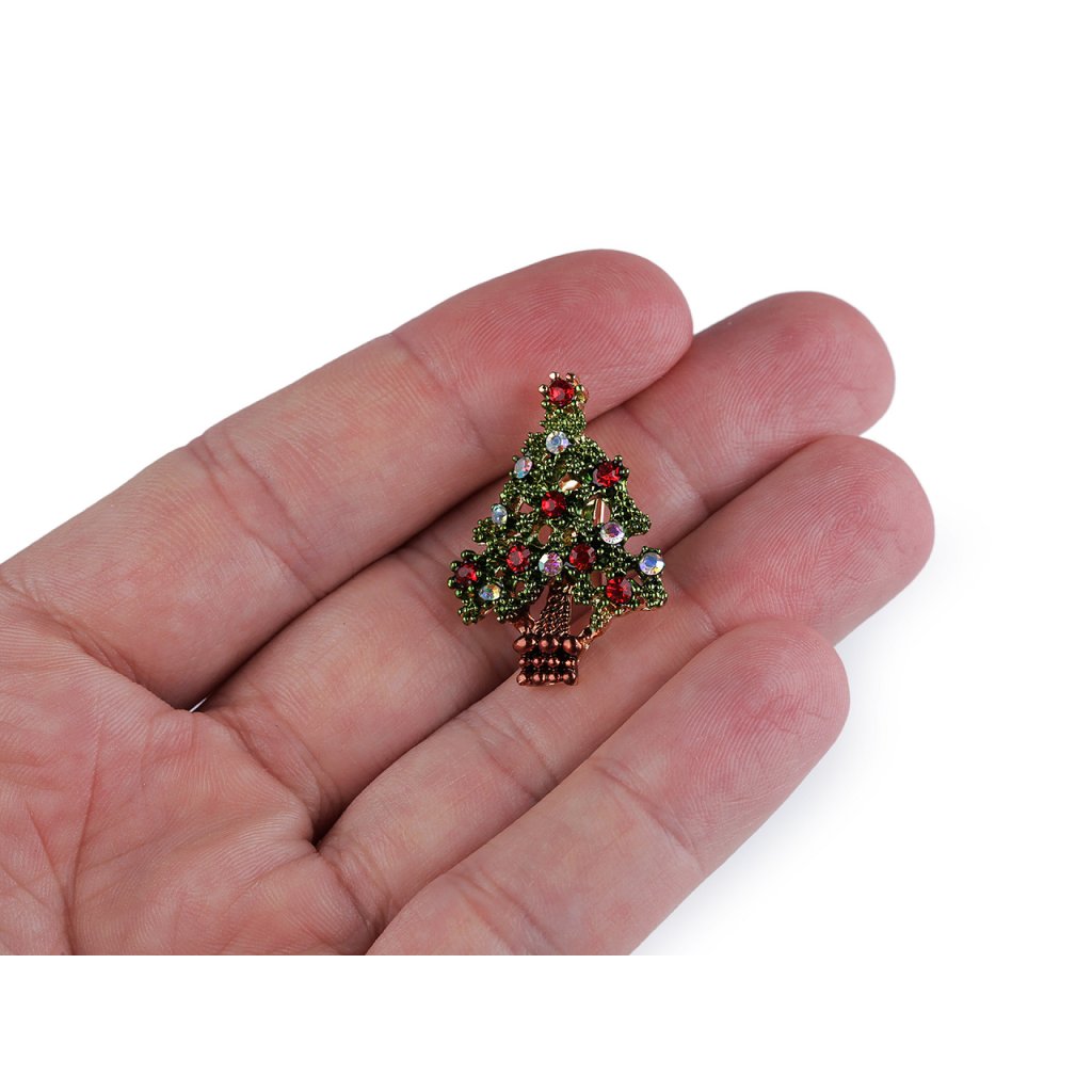 Brož s broušenými kamínky ve tvaru vánočního stromečku je elegantním a zářivým doplňkem, který dokonale podtrhne vaši slavnostní náladu. Tento okouzlující doplněk můžete využít na společenské události - vánoční oslavy, večírky apod. Vynikne na saku, kabátě, košili či halence, dá se připnout na klobouk, tašku, můžete si ozdobně sepnout šátek. Na zadní straně má brožový špendlík.
