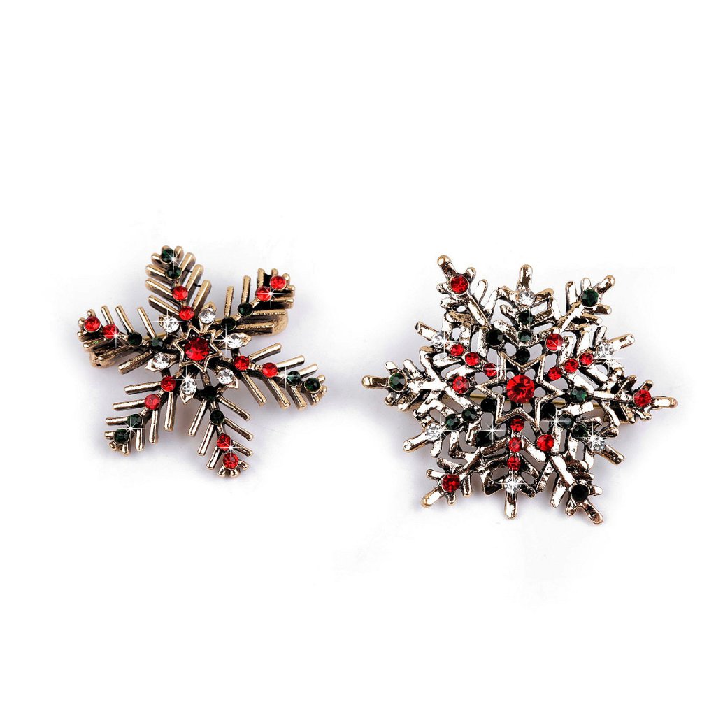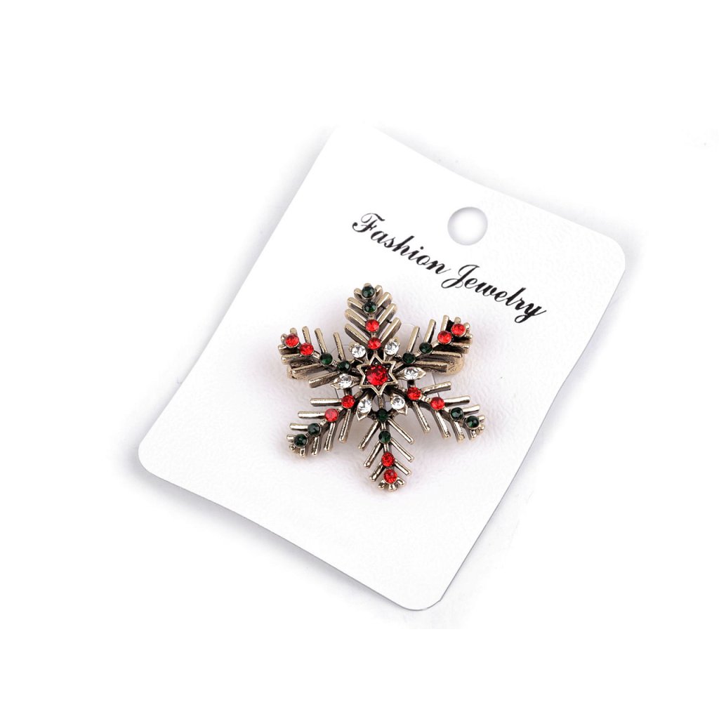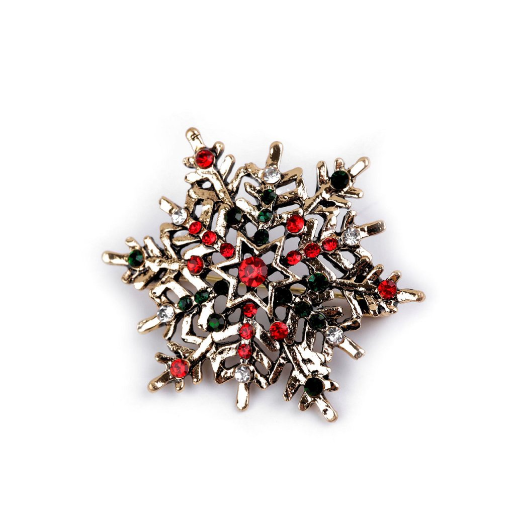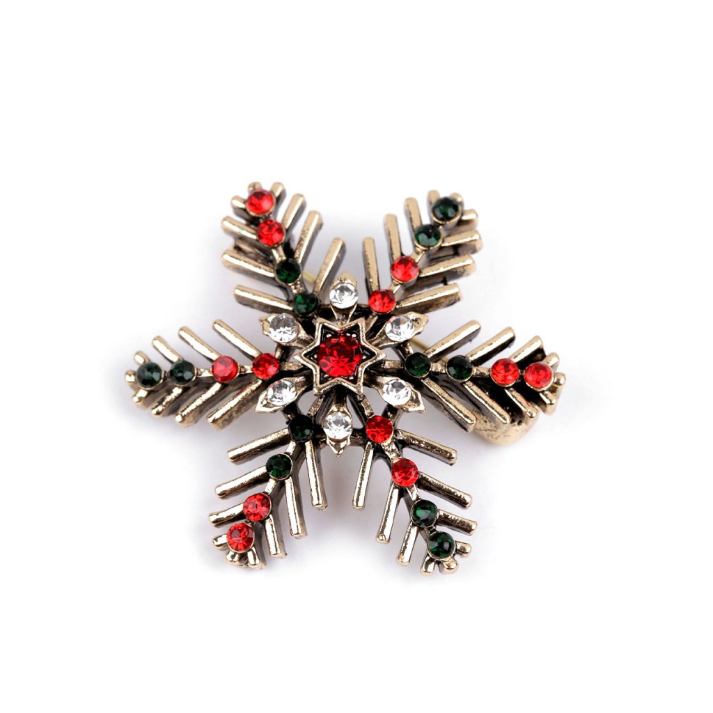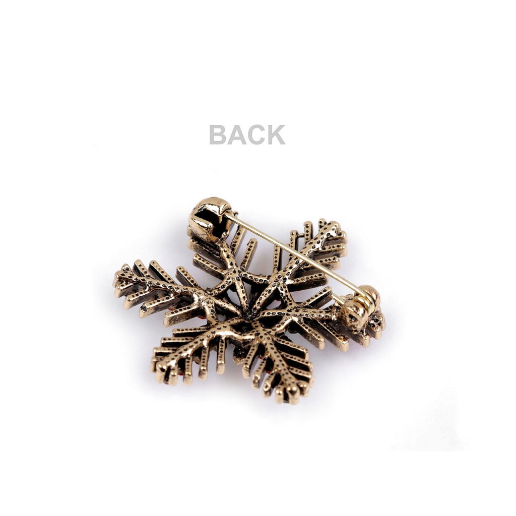 Elegantní brož s vločkou je osázená barevnými broušenými kamínky. Na zadní straně má brožový špendlík. Můžete ji nosit na oděvech, čepicích, kloboucích, taškách či s ní můžete sepnout šátek.