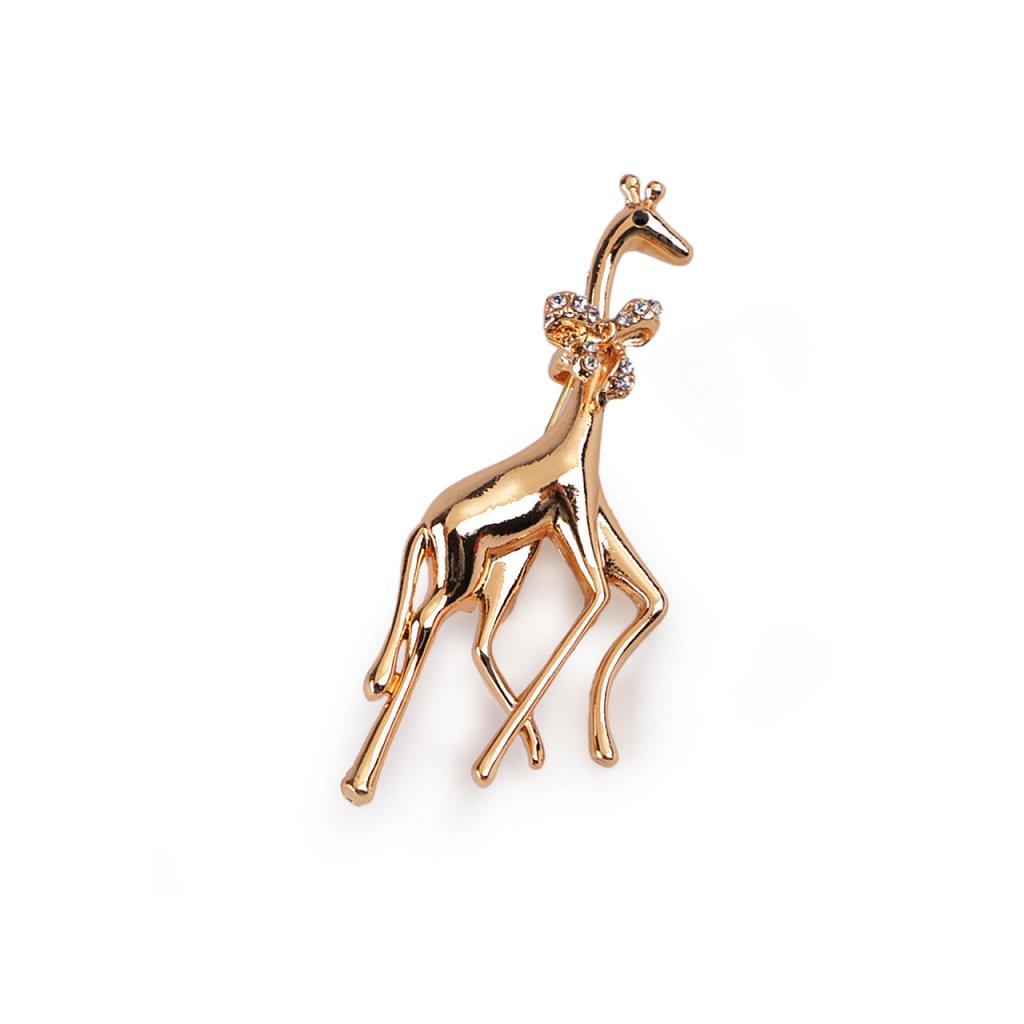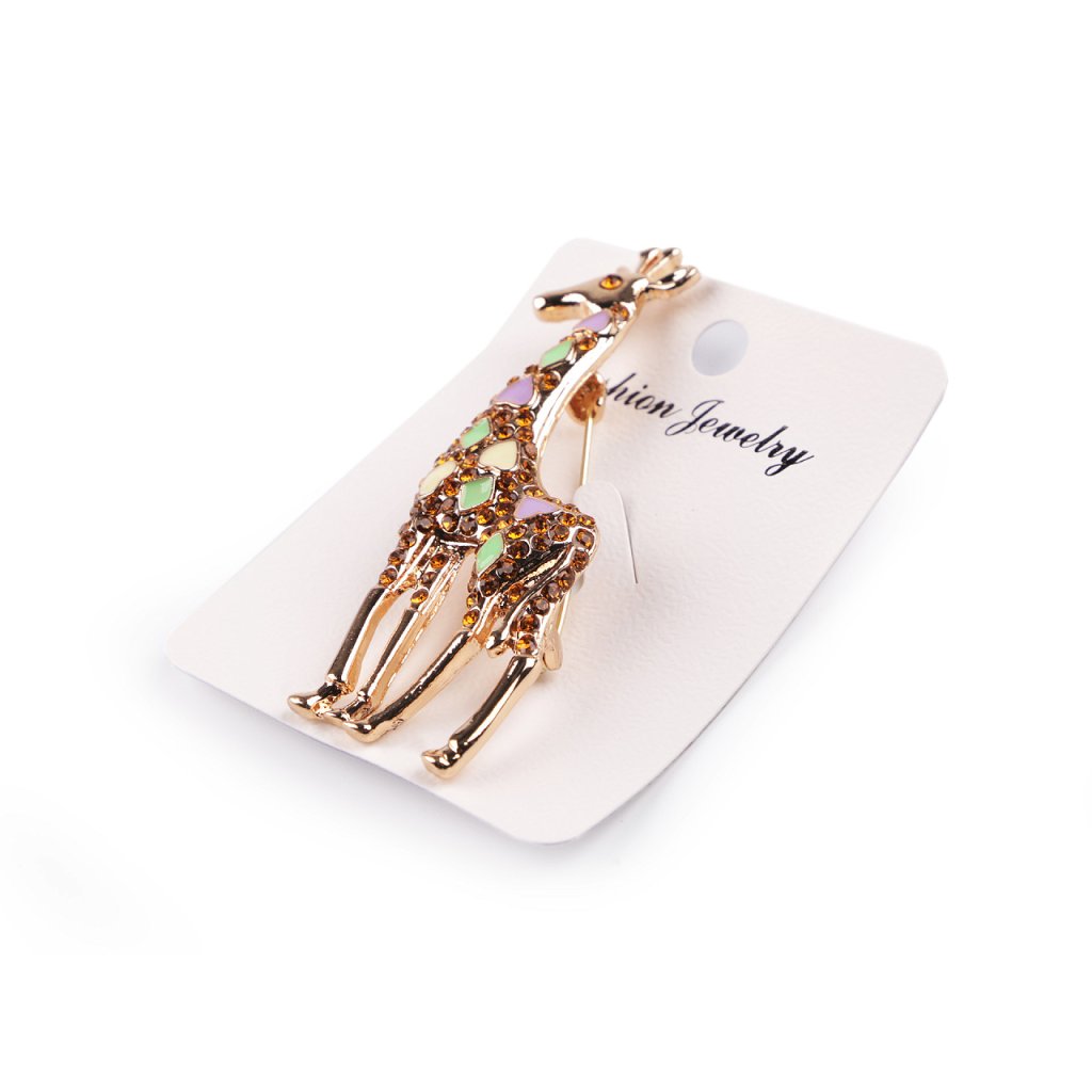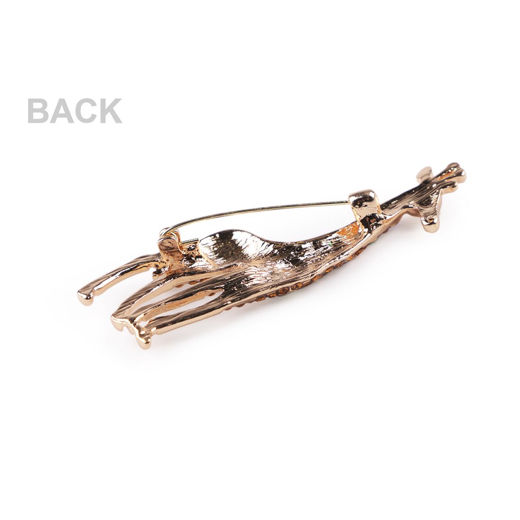 Kovová brož s designem žirafy je originálním doplňkem oděvů, tašek, batohů i šátků. Díky broušeným kamínkům se efektně třpytí. Zapíná se pomocí spínacího špendlíku.