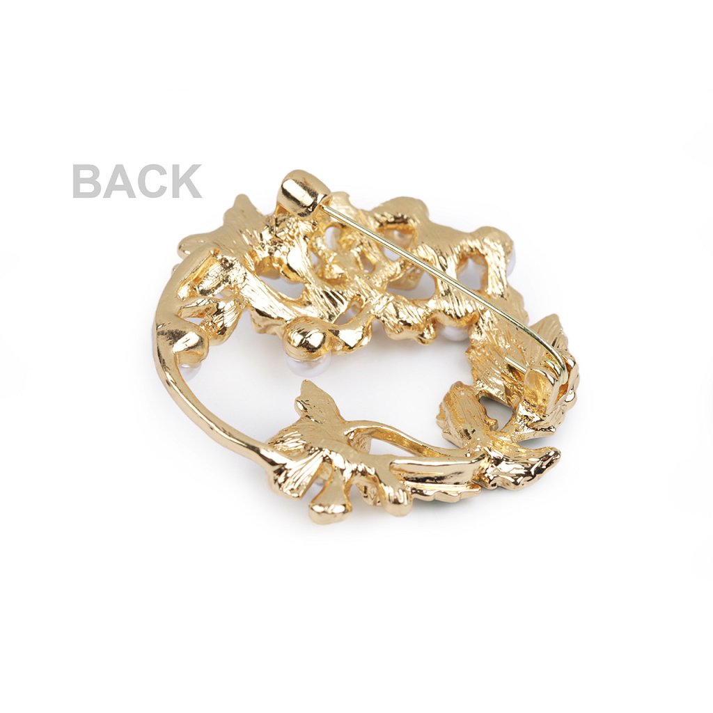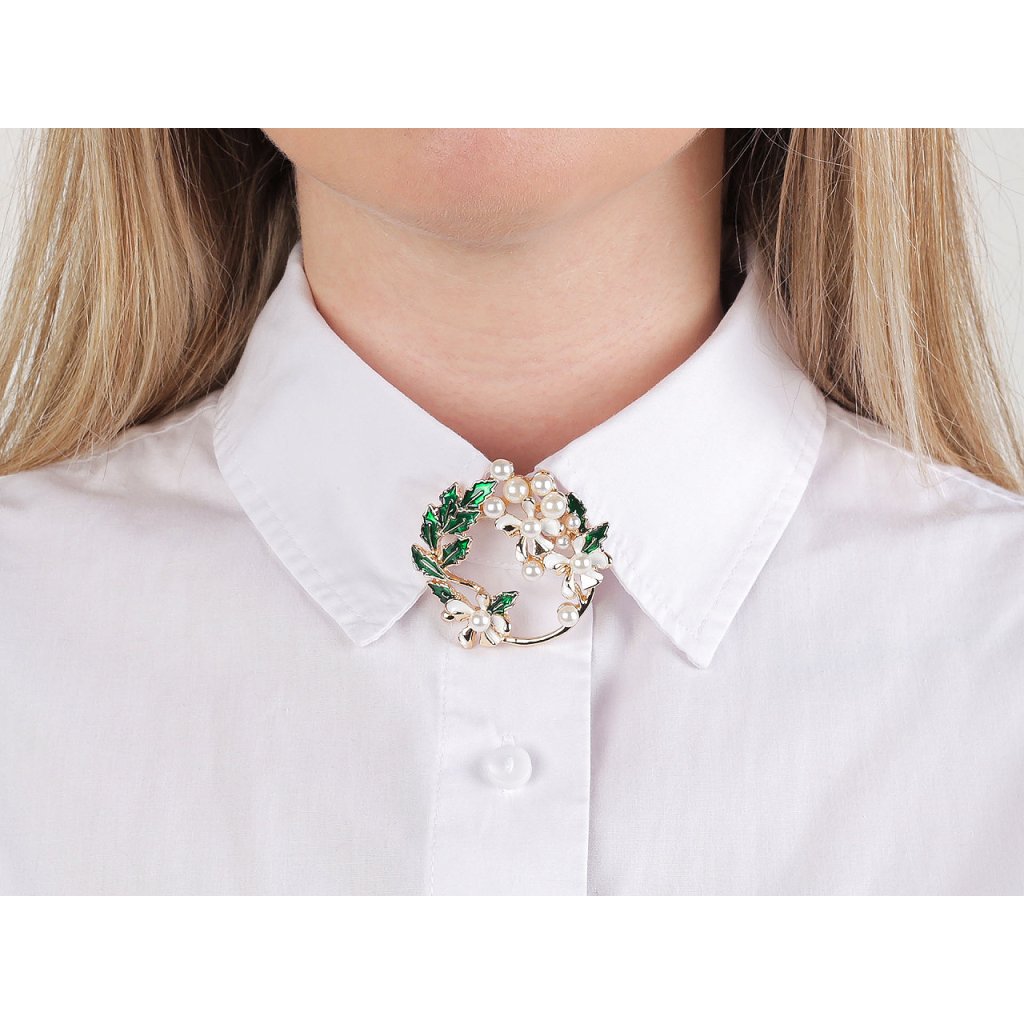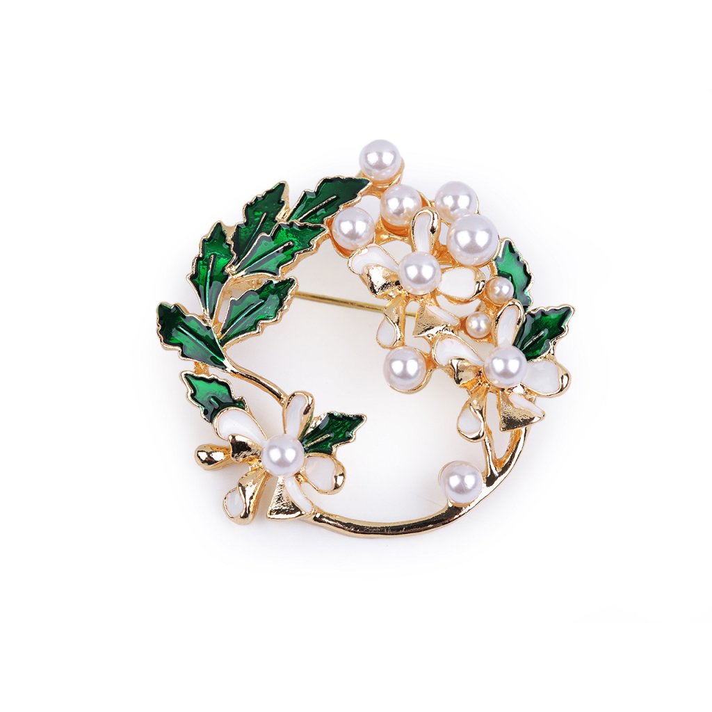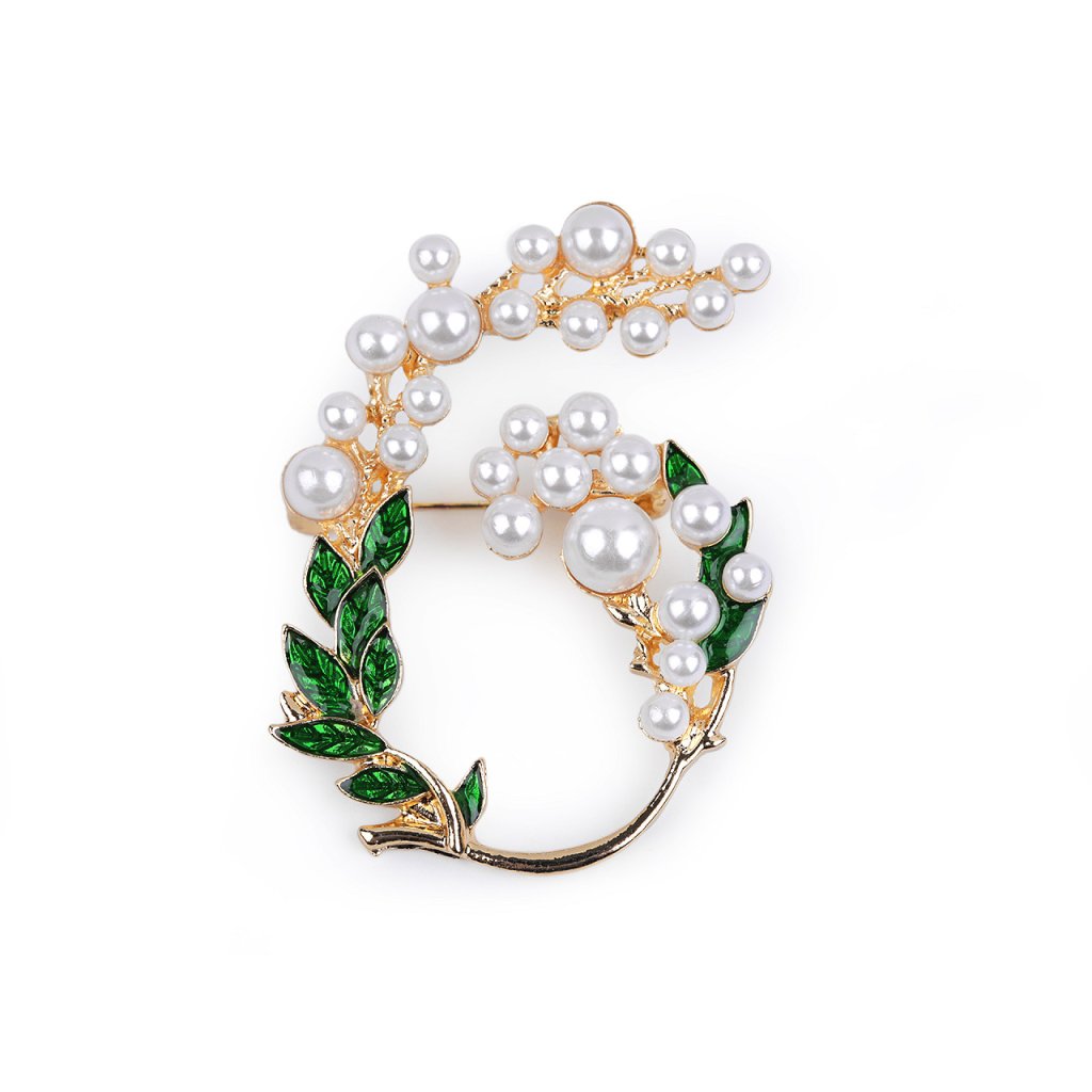 Elegantní brož s rostlinným motivem se smaltem bude perfektním doplňkem vašeho oděvu. Díky perlám skvěle dozdobí halenky, šaty, saka, svetry, kabáty, kabelky či čepice. Hodí se i na ozdobné sepnutí šátku.