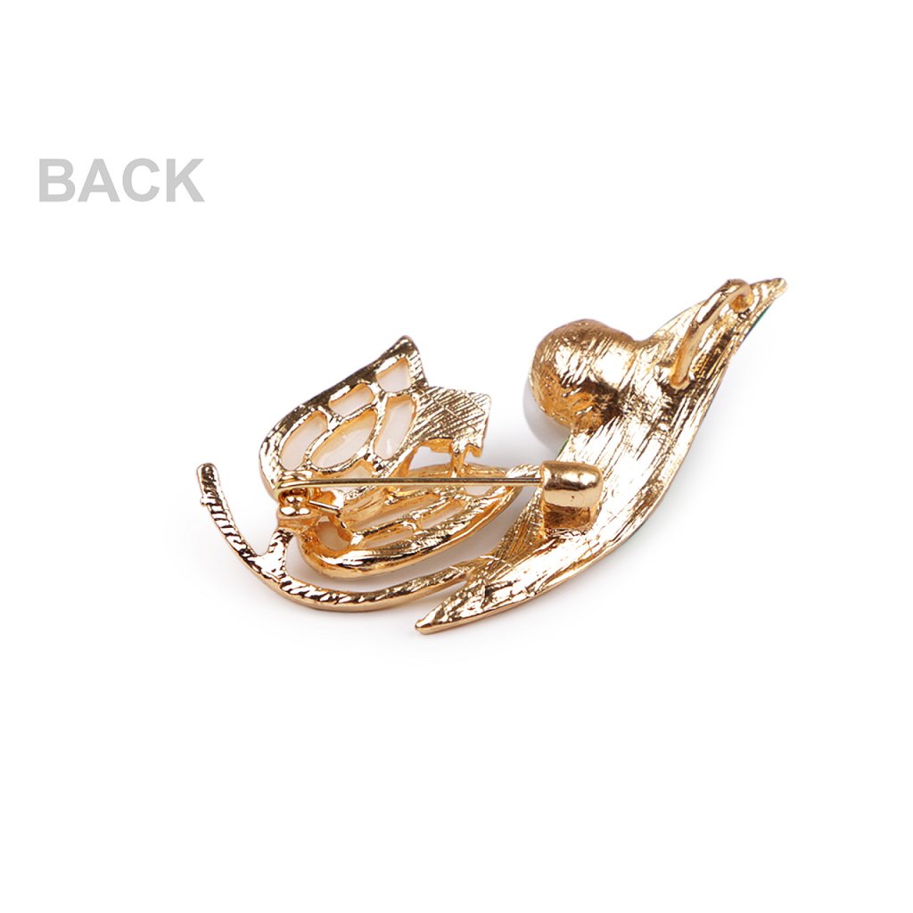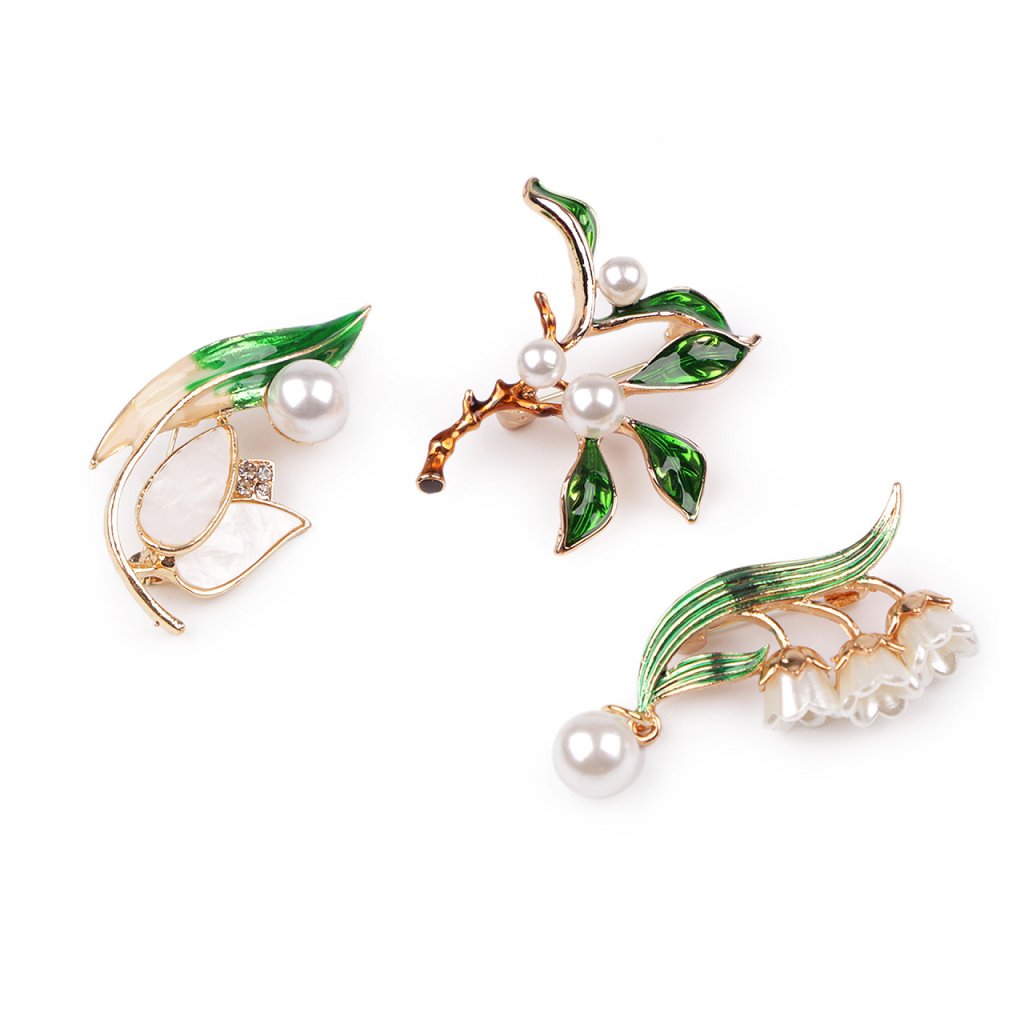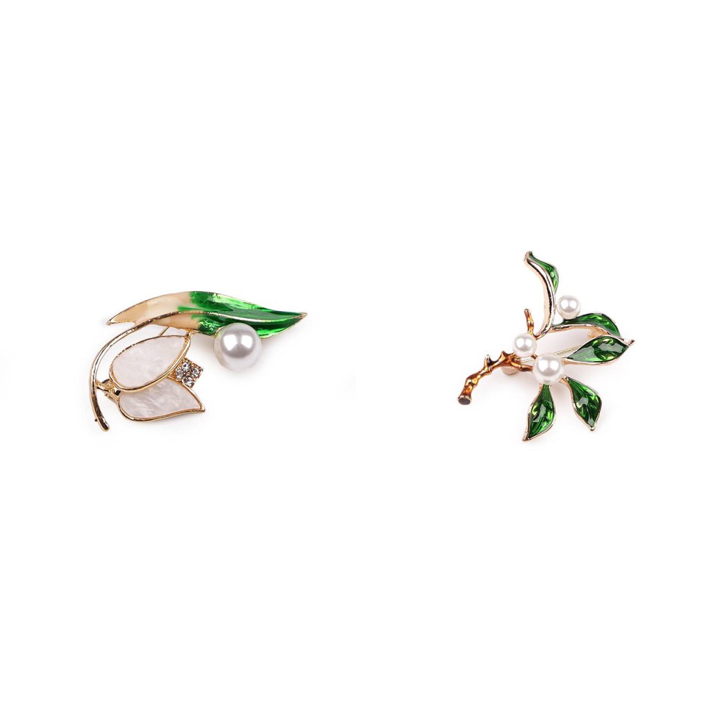 Elegantní brož s motivem rostlin bude perfektním doplňkem vašeho oděvu. Díky perlám a barevnému smaltu skvěle dozdobí halenky, šaty, saka, svetry, kabáty, kabelky či čepice. Hodí se i na ozdobné sepnutí šátku.