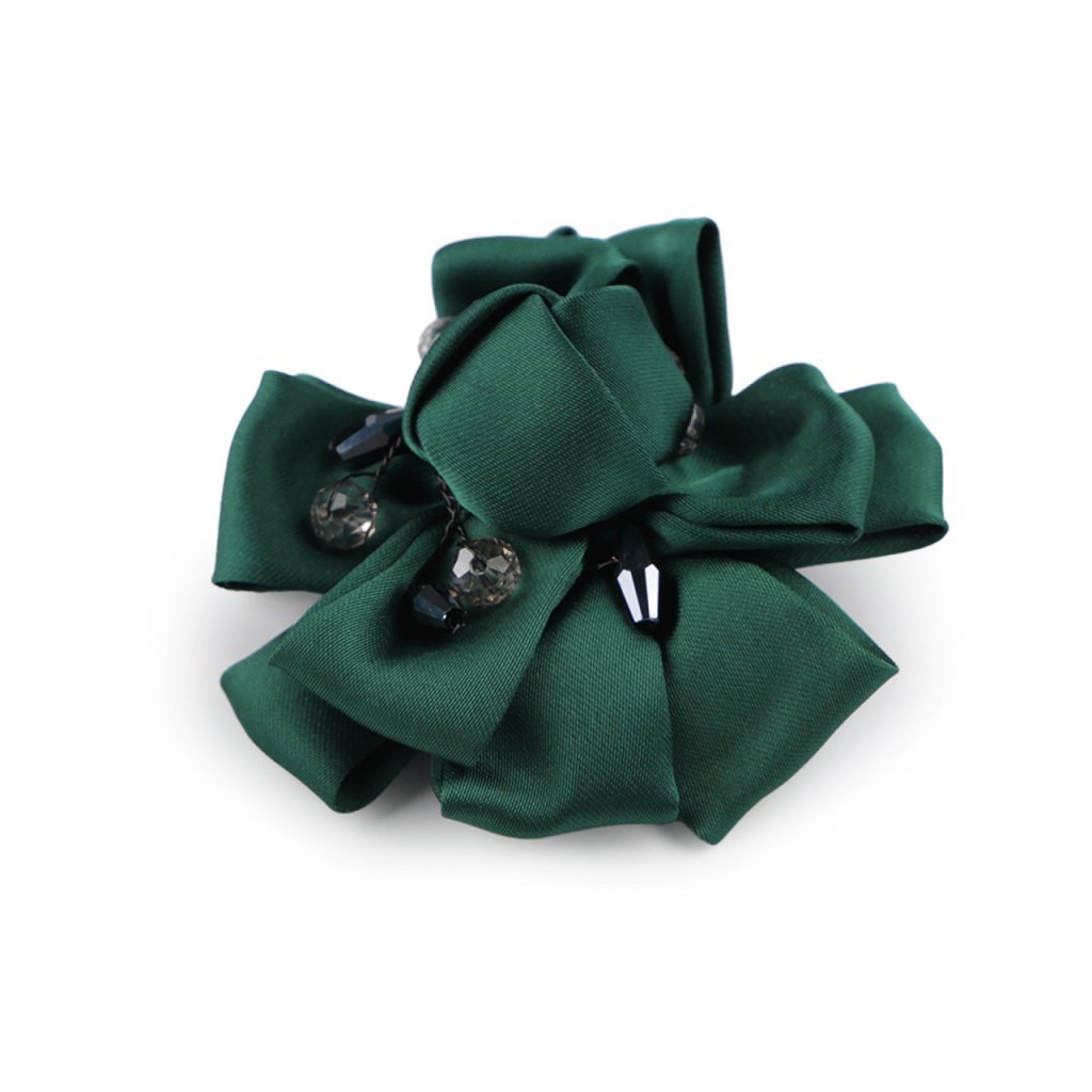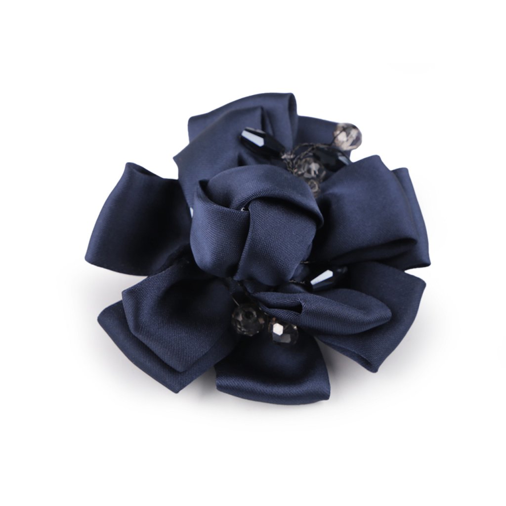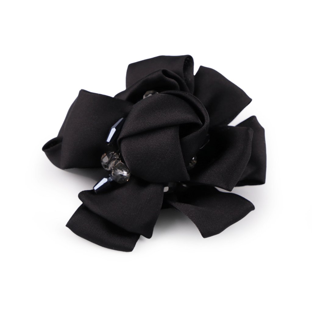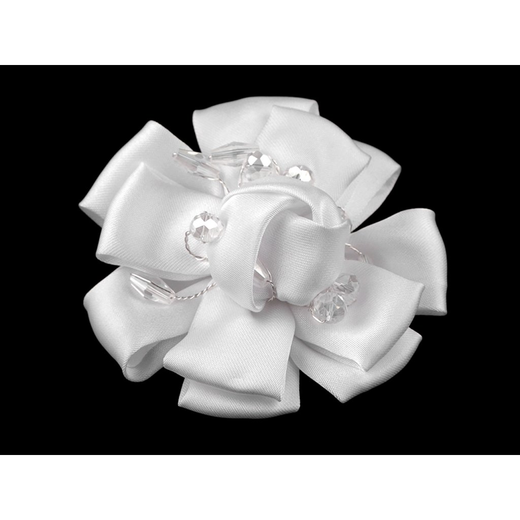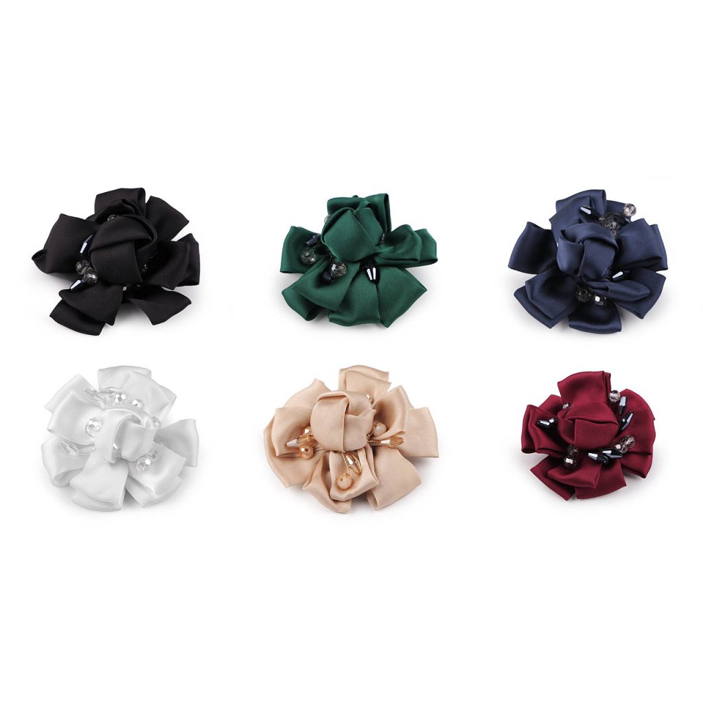 Brož saténový květ s broušenými kamínky Ø7 cm