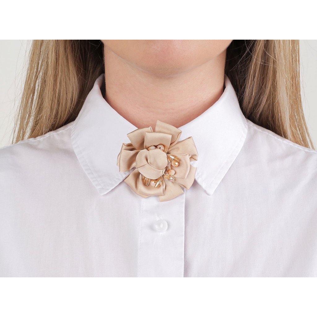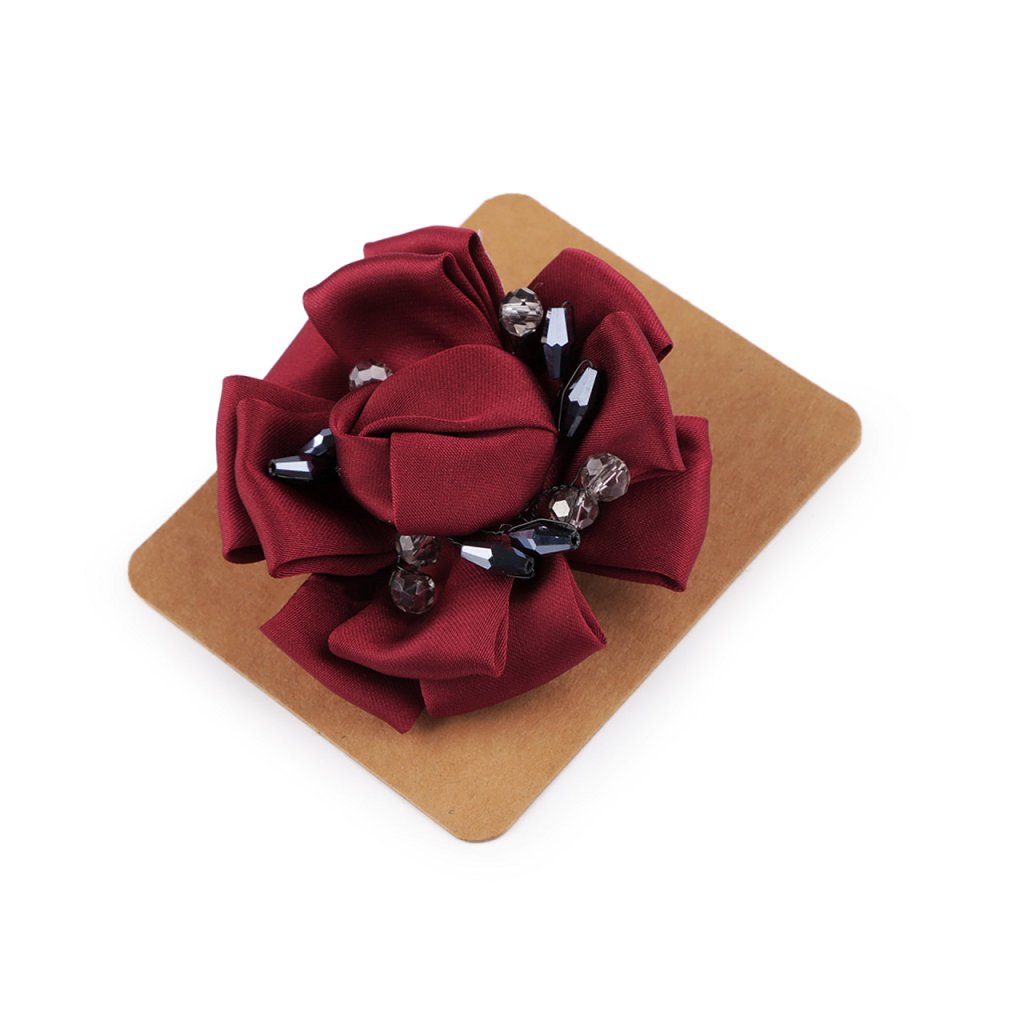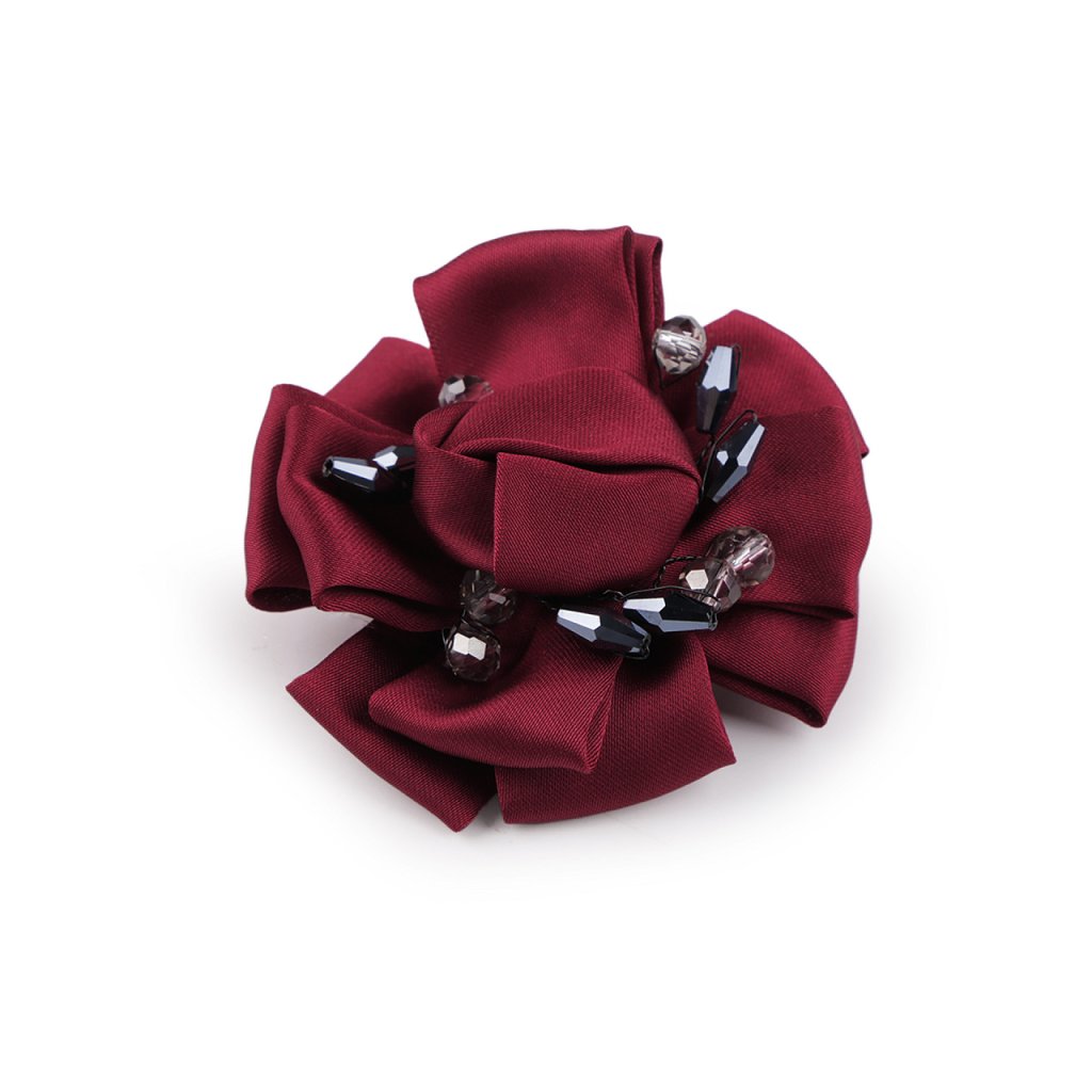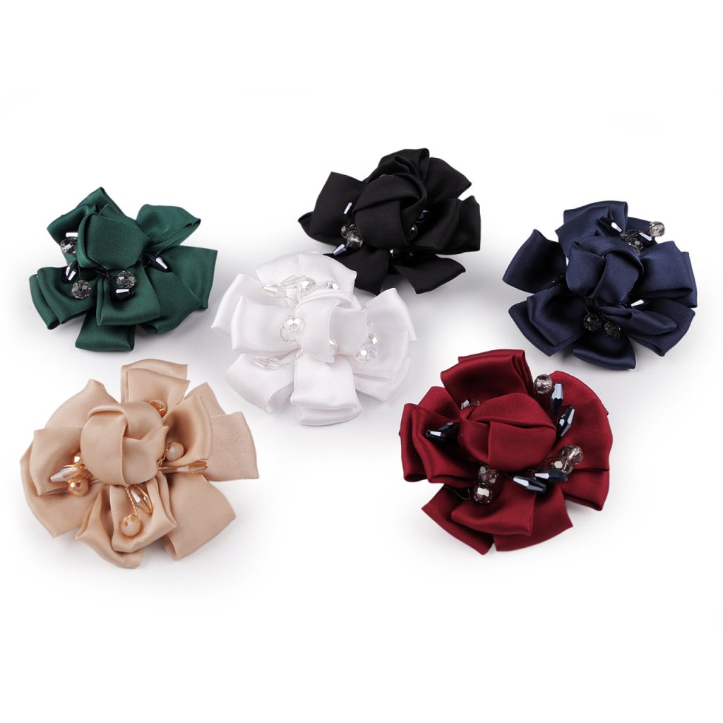 Textilní brož květu je ozdobená broušenými korálky, díky kterým se jemně třpytí. Květ je bohatě vyskládaný ze saténu, působí elegantním dojmem. Vzadu má brožový špendlík, květem si můžete ozdobit šaty, halenku, sako, klobouk i kabelku.