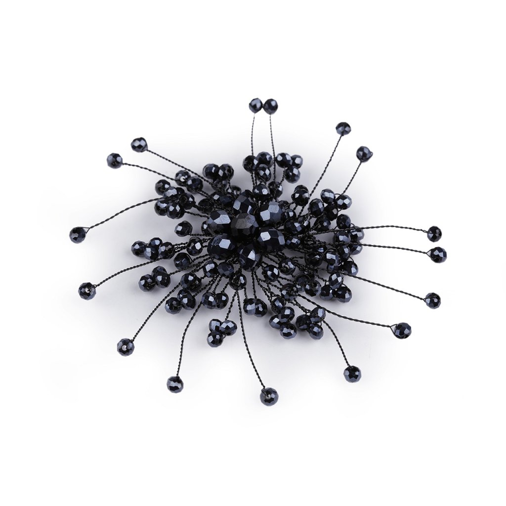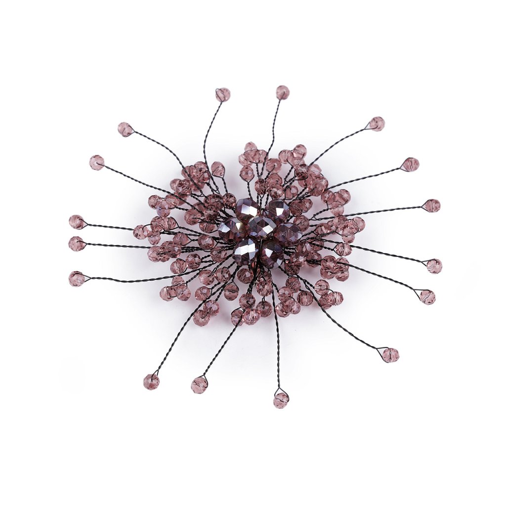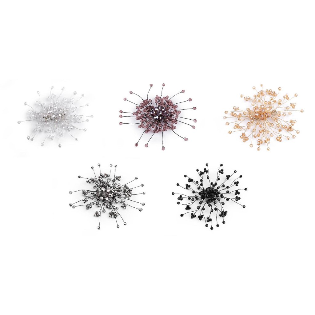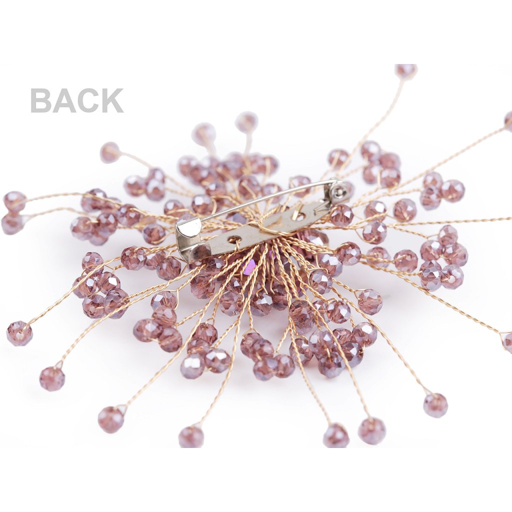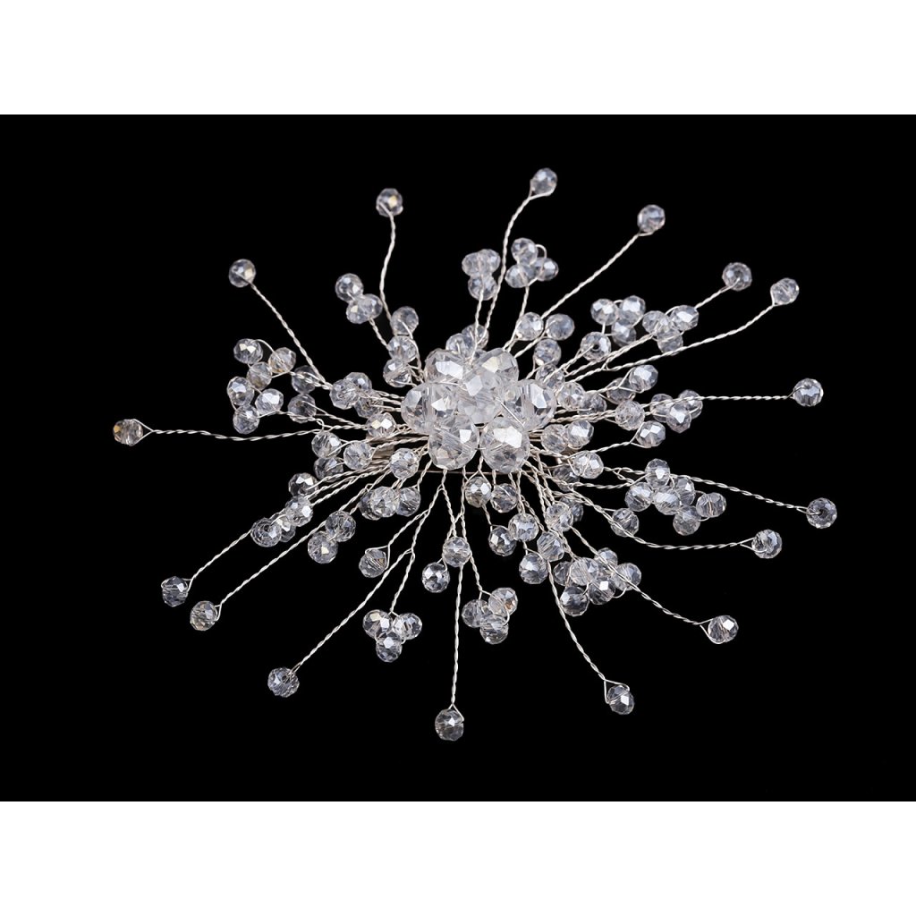 Elegantní brož s broušenými korálky je naprosto úchvatná. Navozuje dojem rozevlátého střapatého květu či sněhové vločky. Díky drátkům ji můžete libovolně tvarovat. Můžete ji nosit na oděvech, kloboucích, kabelkách či s ní můžete sepnout šátek. Na zadní straně má brožový špendlík.