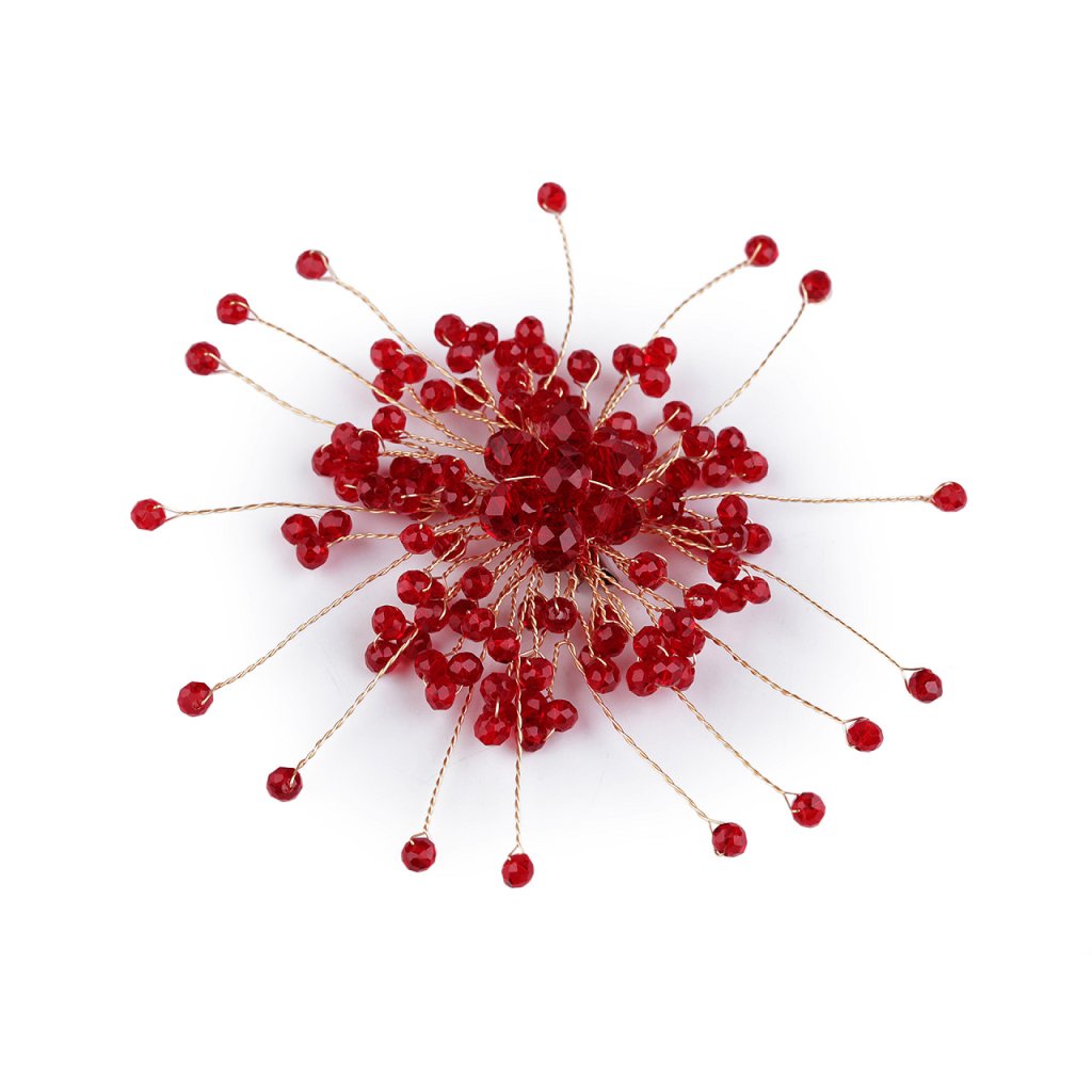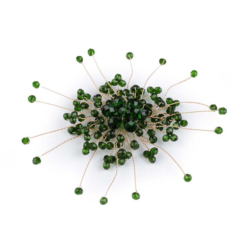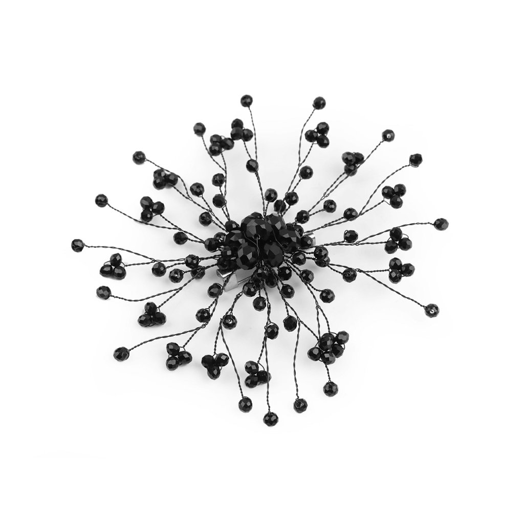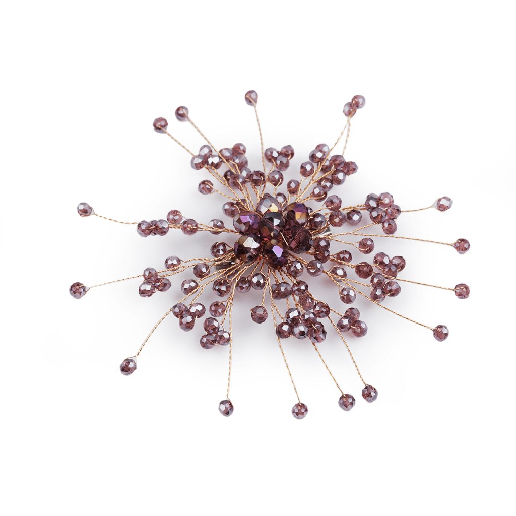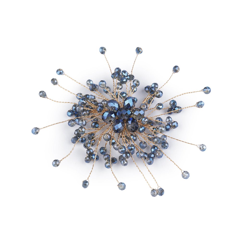 Elegantní brož s broušenými korálky je naprosto úchvatná. Navozuje dojem rozevlátého střapatého květu či sněhové vločky. Díky drátkům ji můžete libovolně tvarovat. Můžete ji nosit na oděvech, kloboucích, kabelkách či s ní můžete sepnout šátek. Na zadní straně má brožový špendlík.