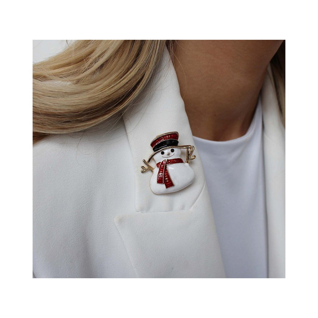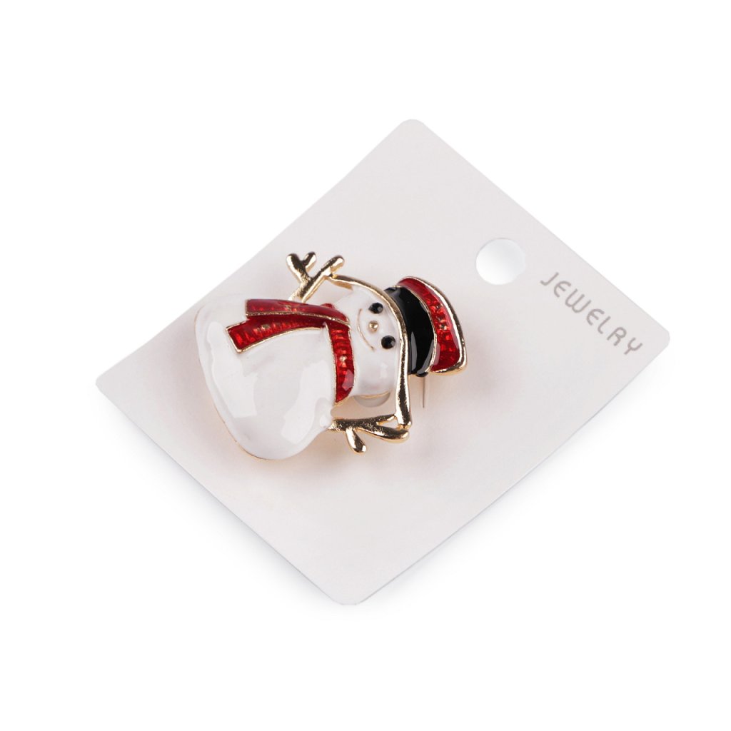 Vánoční brož se sněhulákem je ozdobená barevným smaltem. Bude stylovým doplňkem vašeho zimního outfitu. Skvěle dozdobí kabáty, saka, svetry, kabelky či čepice.