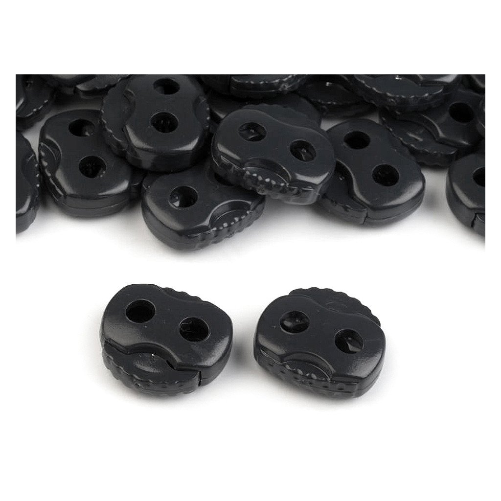 Brzda se používá jako součást oděvů a bund pro efektní ukončení šňůrek. Uvnitř brzdičky je strunka která zajišťuje pevnější uchycení. Rozměr brzdy je 20 x 20 mm, průměr dírky 5 mm.