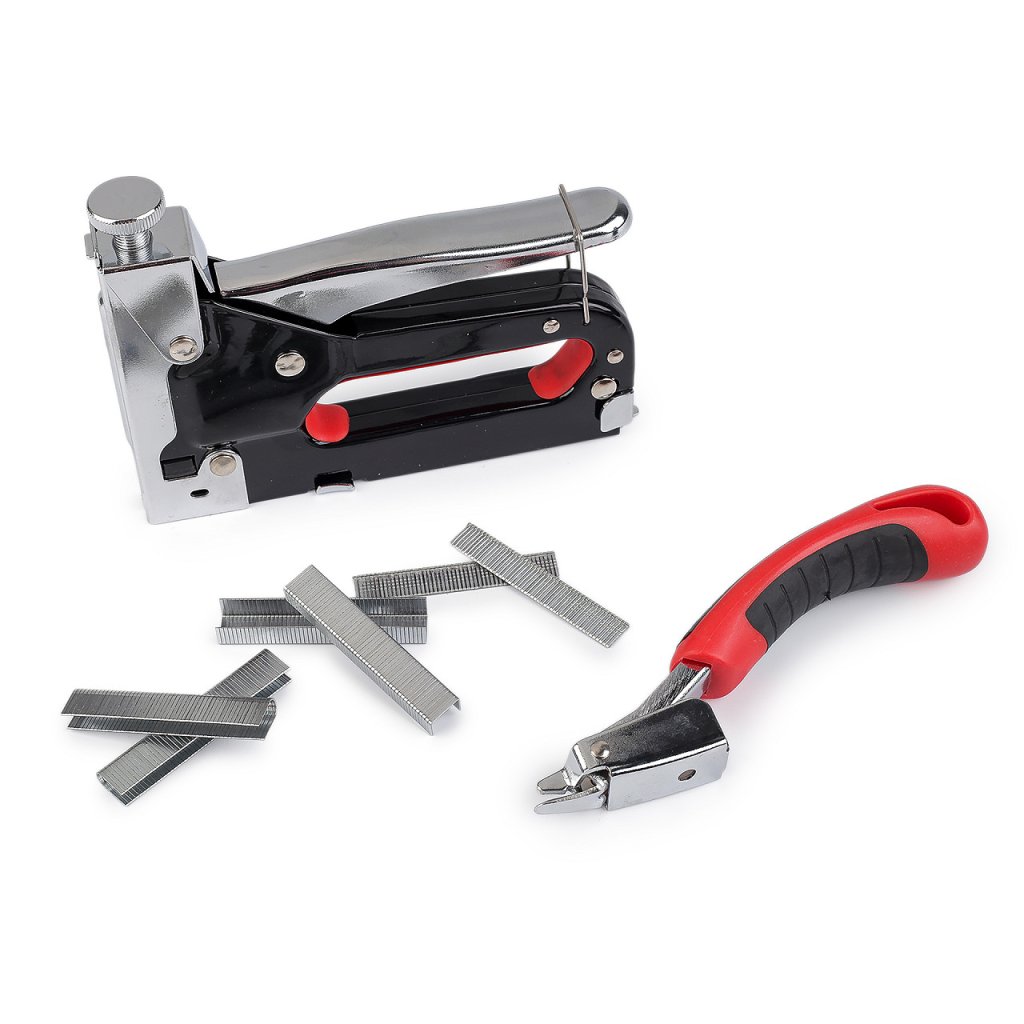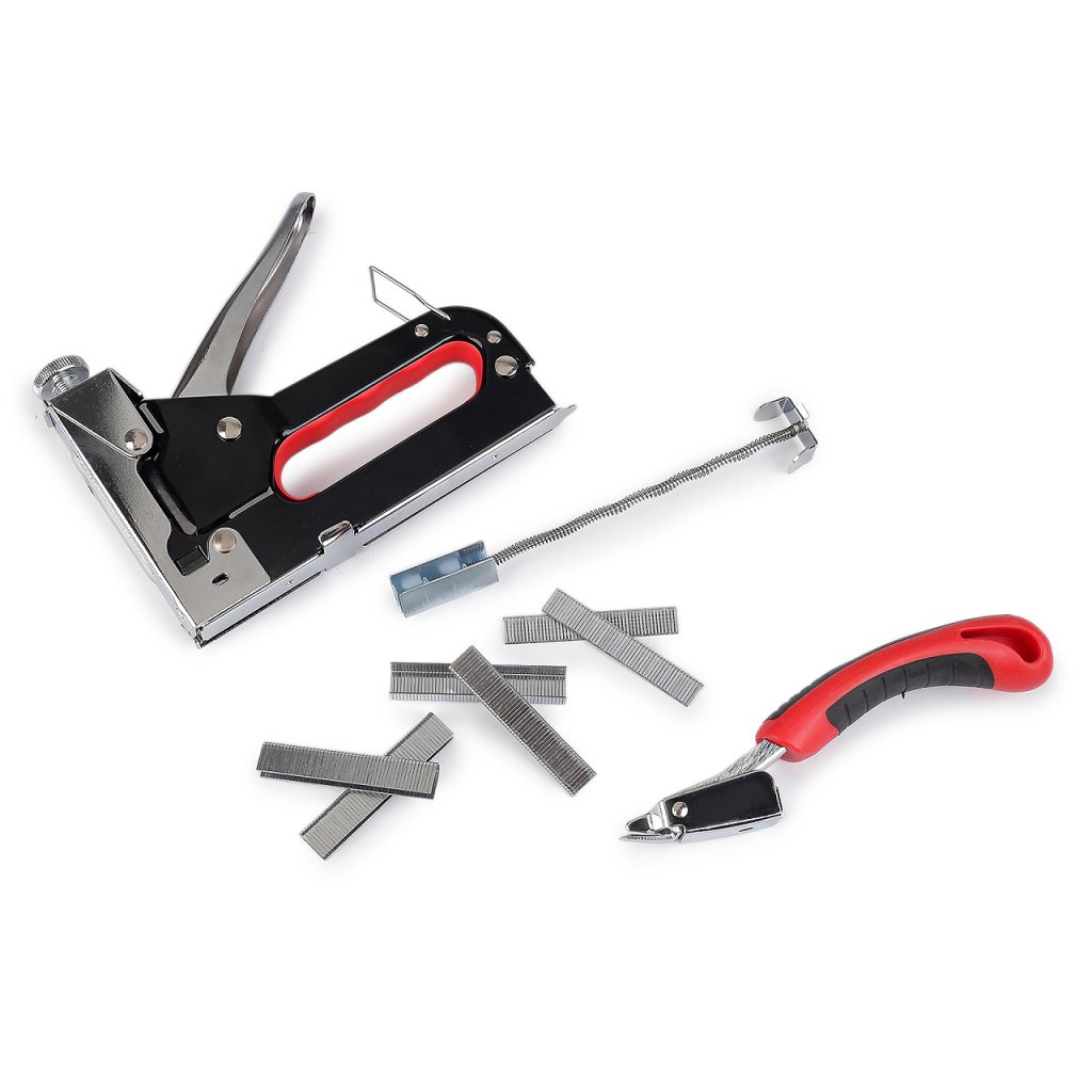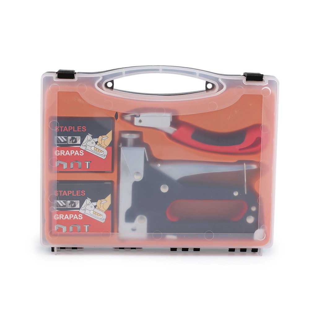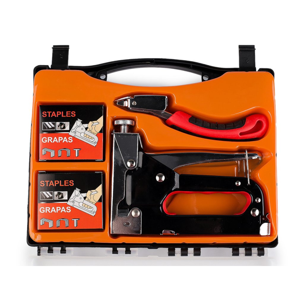 Čalounická sponkovačka je ideálním pomocníkem pro všechny, kteří se věnují čalounickým pracím. Tato sada obsahuje robustní kovovou sponkovačku s ergonomicky tvarovanou rukojetí pro pohodlné držení a dlouhodobé používání. Díky kvalitní konstrukci je sponkovačka odolná a spolehlivá, což zajišťuje precizní a efektivní práci.