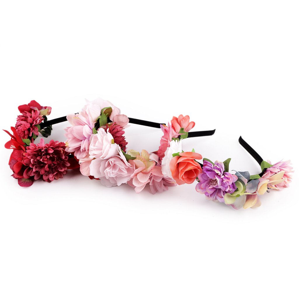 Rozkvetlá čelenka probudí v každé ženě, dívce či malé slečně skrytou vílu. Čelenka bude rozkvetlým doplňkem vašich vlasů na svatbu, letní festivaly, je nezbytným doplňkem pro družičky.