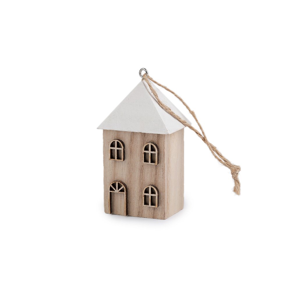 Malý dřevěný domeček můžete díky poutku zavěsit na stromeček, dekorační věnce, větvičky ve váze apod. Je vhodný k celoročnímu aranžování.
