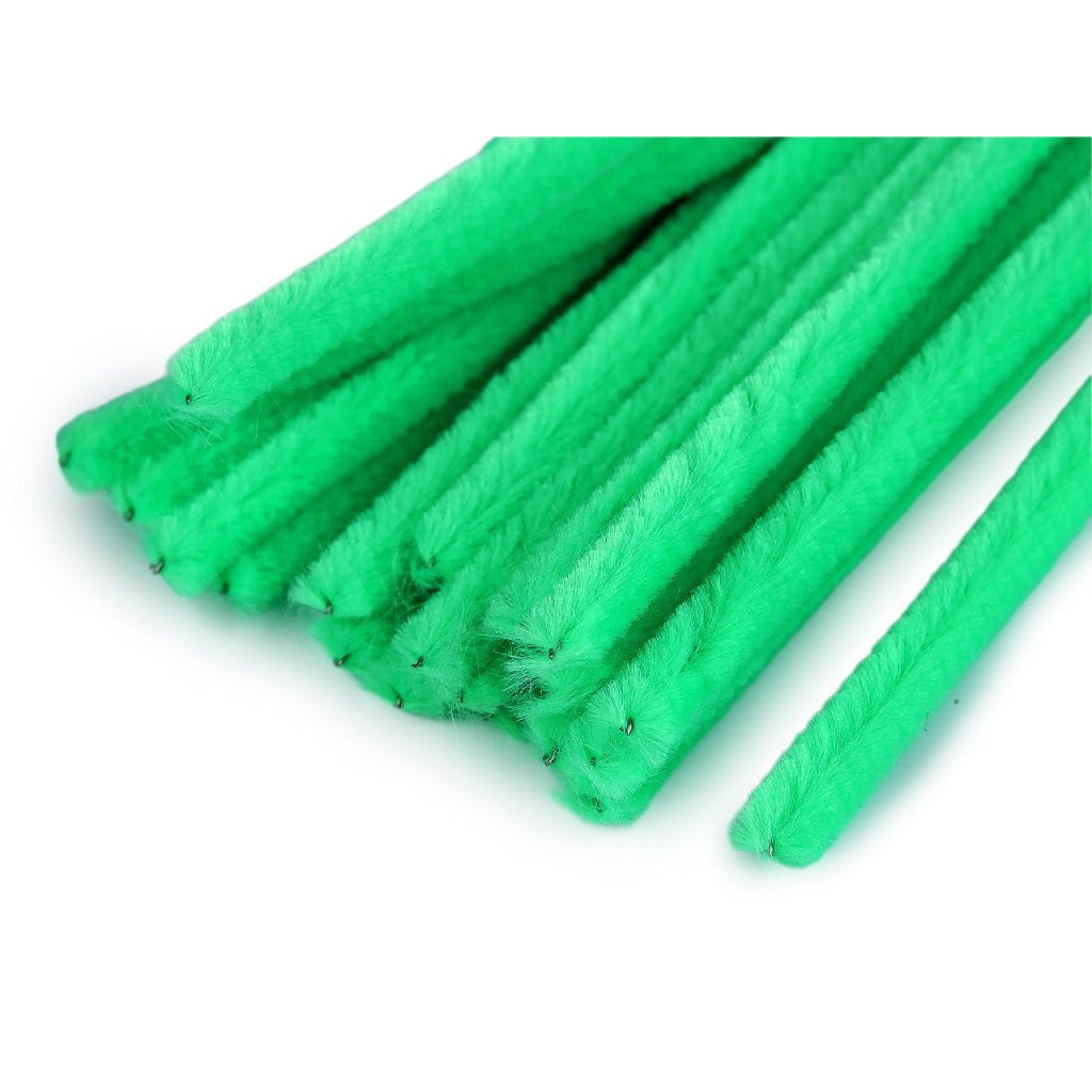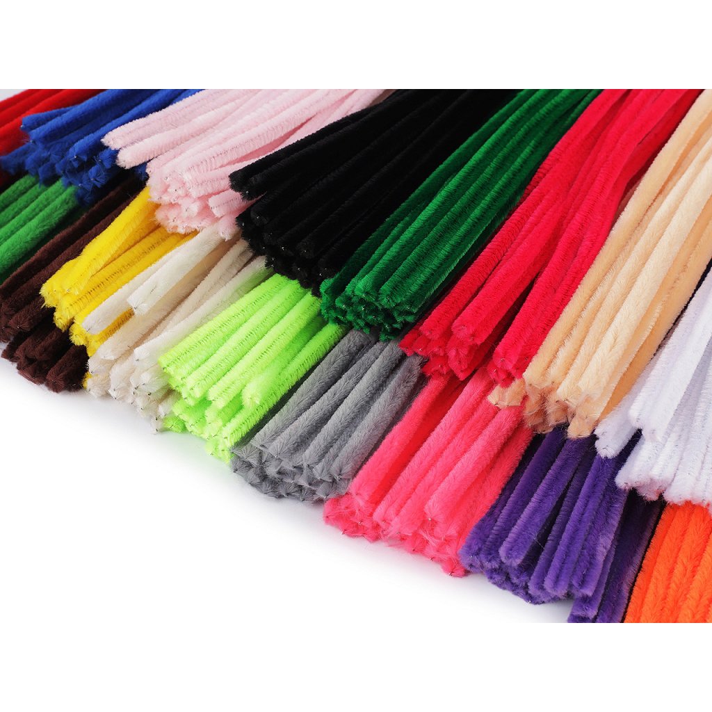 V případě bílé barvy se nejedná o barvu sněhově bílou. Na koncích bílých drátků jsou barevné chloupky z jiných barevných drátků, které lze však jednoduše sundat - toto není důvodem k reklamaciChenille je měkké efektní vlákno, ze kterého vyčnívá jemné chmýří. Vzhledem k tomu, že je velmi měkké, je s oblibou zpracováváno v dámské módě pro výrobu nejmódnějšího úpletového zboží. V tomto případě je drátěná tyčinka opletená tímto vláknem a používá se k výrobě různých hraček, ozdob, ale i k čištění dýmek. Lze je všelijak kroutit, splétat, stříhat, kombinovat například s bambulkami. Tento typ drátku můžete doplnit i chlupatým drátkem o větším průměru.