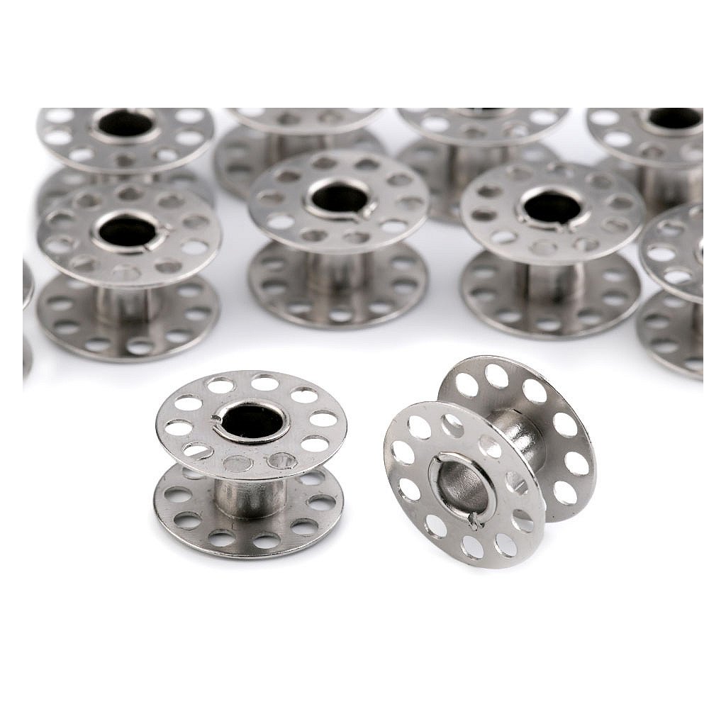 Kovová cívka na navinutí nití je určena k šicímu stroji Lada. Díky dírkám po stranách ji využijete také na výrobu originální bižuterie.