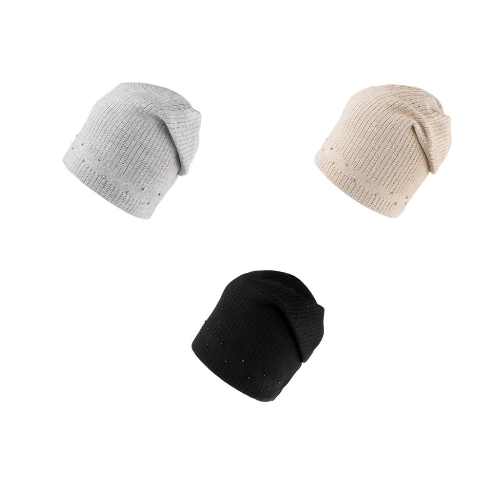 Elegantní řádkovaná čepice s perlami ve stylu Homeless má mladistvý ležérní střih se spuštěným zadním koncem. Konec čepice je přešitý, odpadá její složité aranžování na hlavě. Perly dodávají celkovému vzhledu lesk a styl. Materiálová úprava lamblook dodává čepici příjemnou kašmírovou měkkost a komfort při nošení. Čepice vás bude hřát celou zimu, má lem z dvojité pleteniny, je ideální pro zimní procházky ve městě i pro outdoorové aktivity.