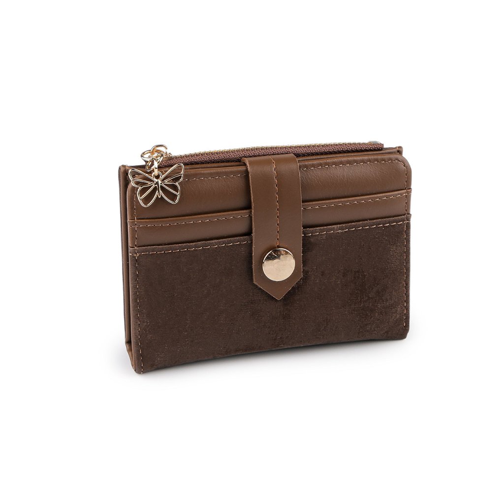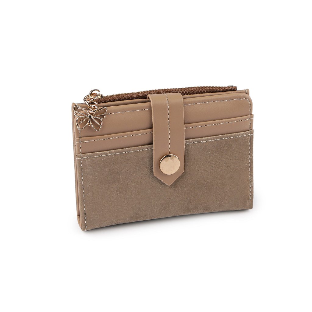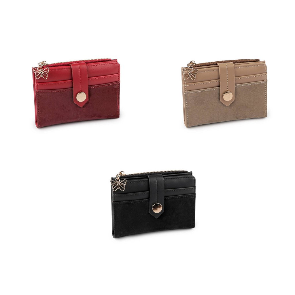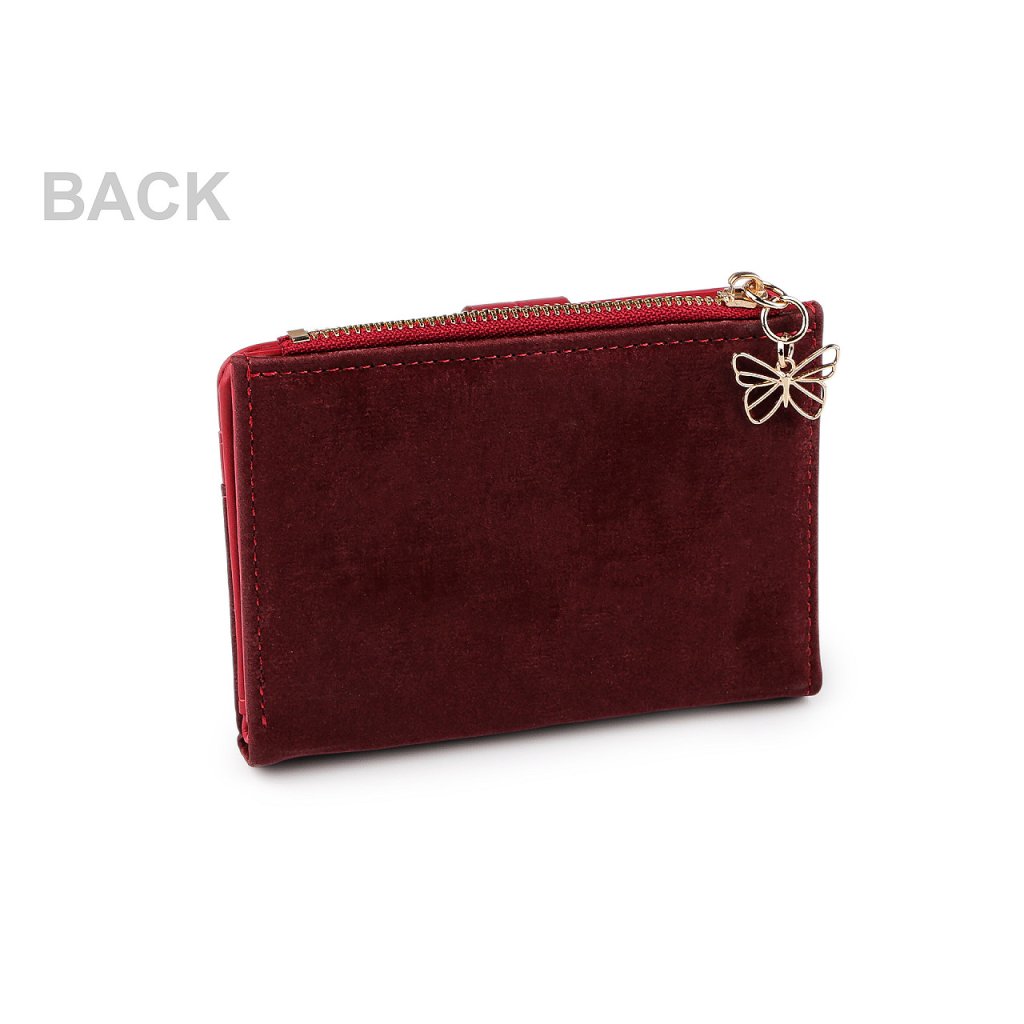 Šikovná malá peněženka má kompaktní tvar, vejde se do každé kabelky. Z části je potažená elegantní imitací sametu, který peněžence přidává luxusní vzhled.