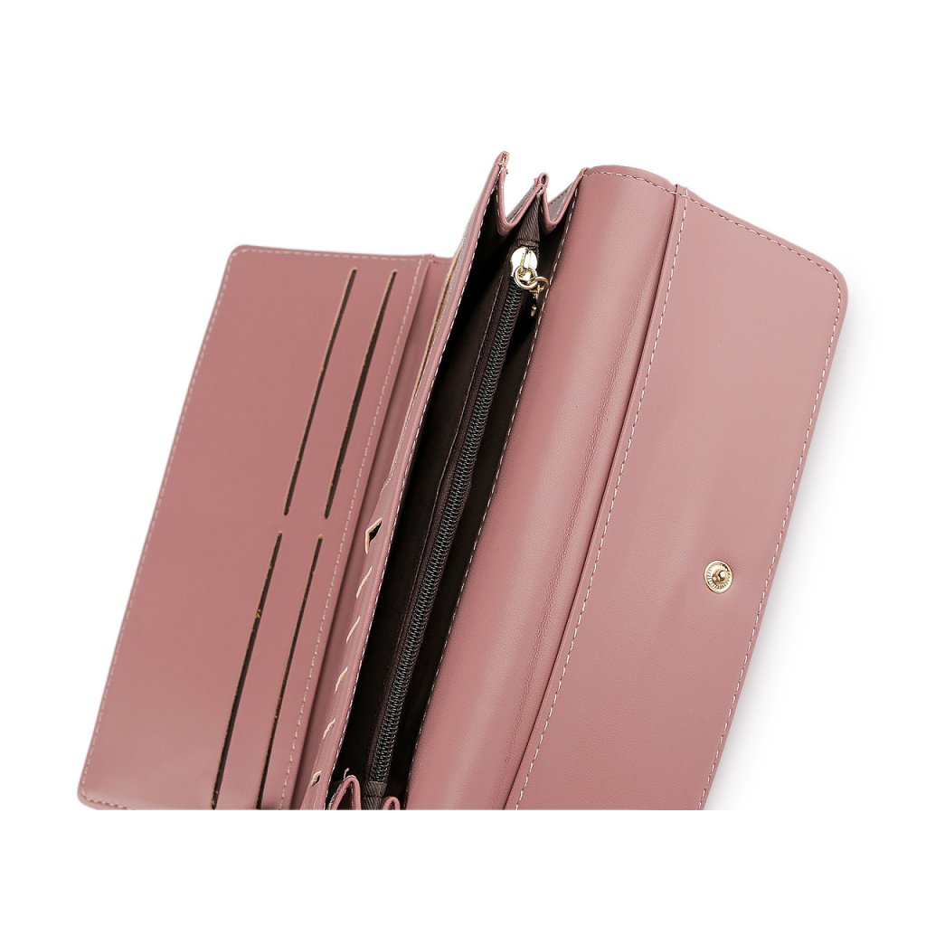 Zavírá se na klopu a patent. Peněženka má celkem 10 přihrádek na karty, z nichž jedna je průhledná a 1 dlouhá přihrádka na účtenky apod. Uprostřed peněženky se nachází 2 kapsy na bankovky, oddělené přepážkou, ve které je umístěný mincovník s uzavíráním na zip.