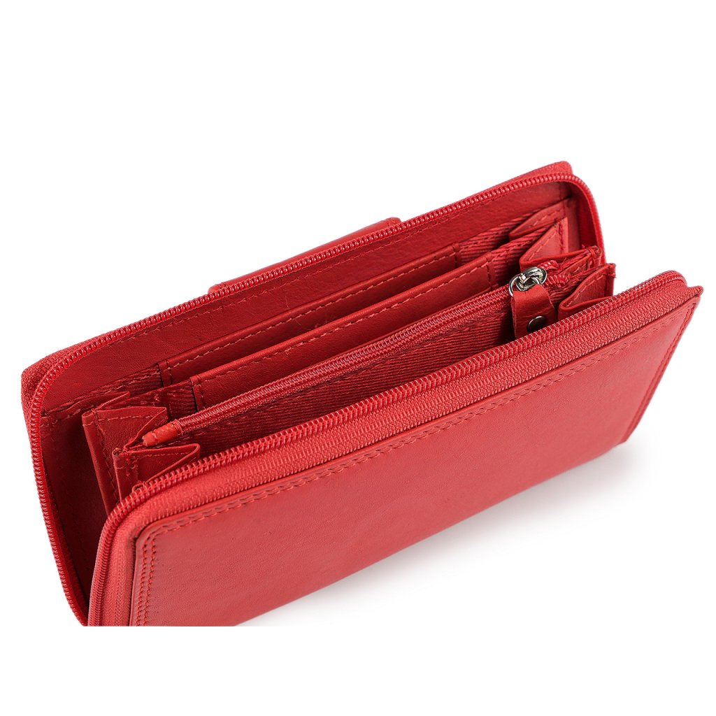 Zapíná se na zip. Uvnitř se nachází 4 přihrádky na bankovky a jedna kapsa s otvíráním na zip, sloužící jako mincovník. Uvnitř pak najdete i dostatečné množství přihrádek k uložení karet či dokladů. Na přední straně pod zápinkou je ještě jedna plochá kapsa.