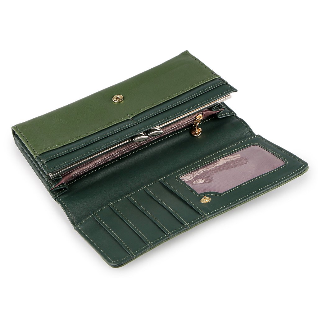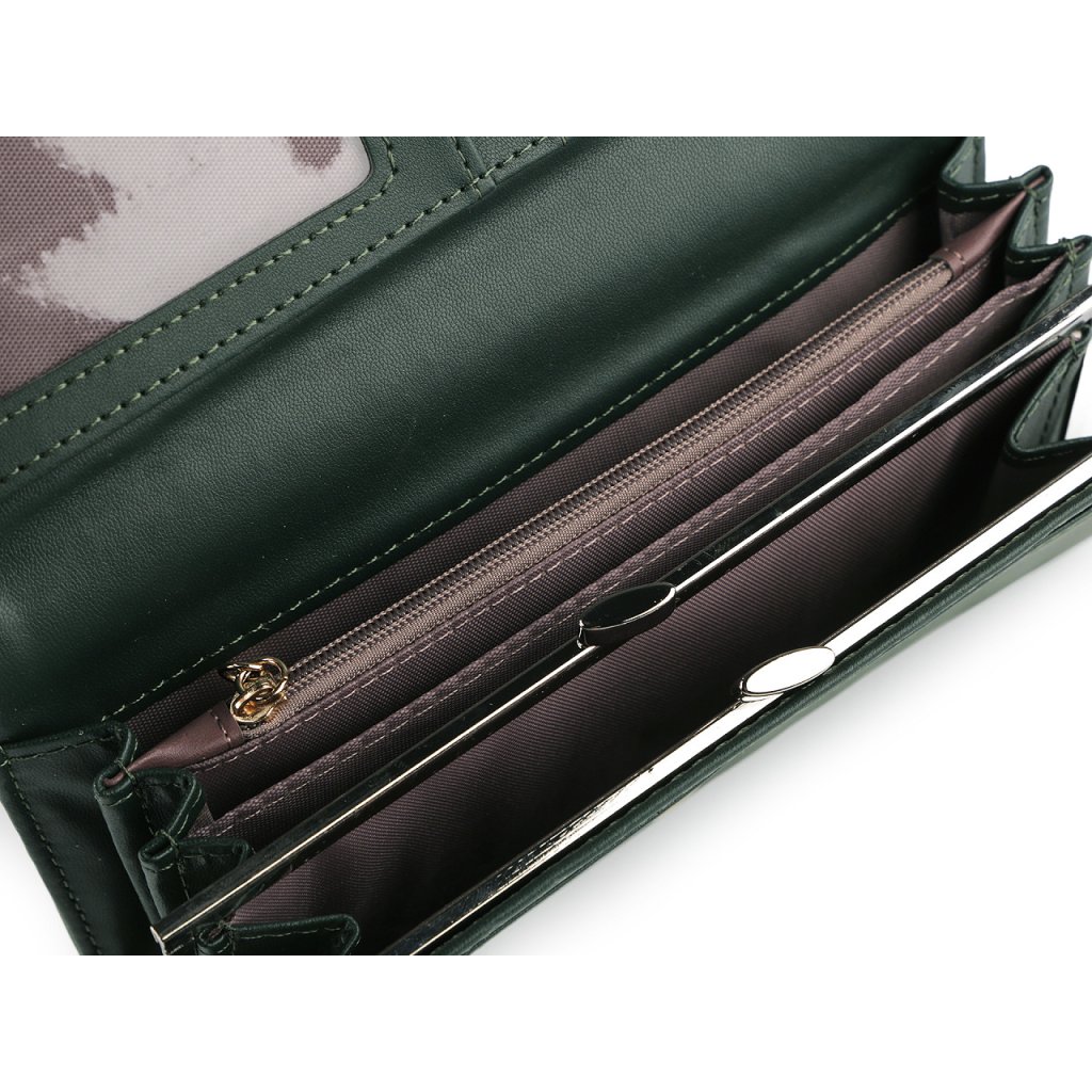Zavírá se na klopu a patent. Peněženka má celkem 9 přihrádek na karty, z nichž jedna je průhledná. Uprostřed peněženky se nachází 3 kapsy na bankovky, oddělené přepážkami. V jedné přepážce je umístěná kapsa na zip. Vlevo je mincovník, který má kovové zapínání.