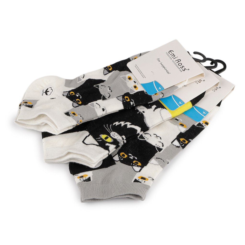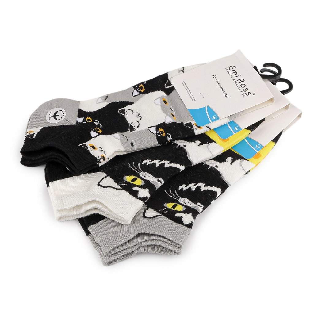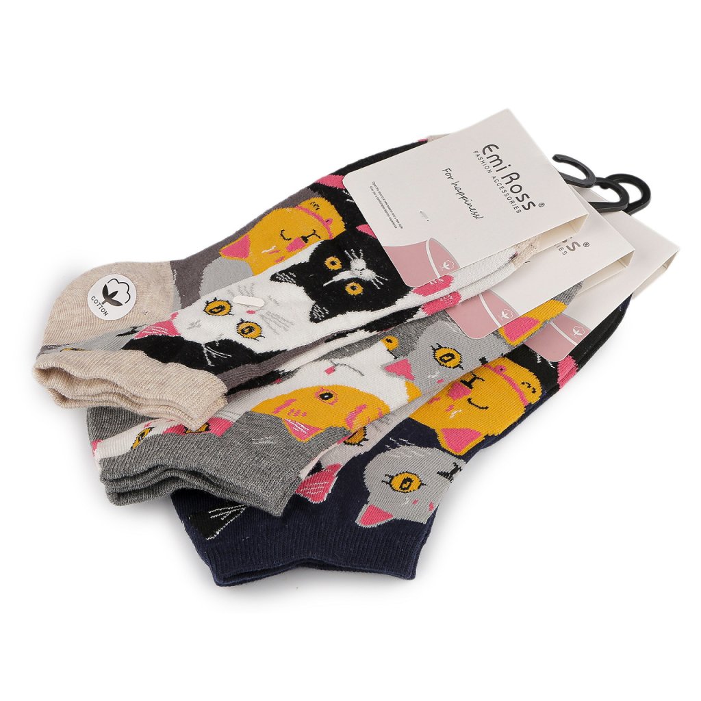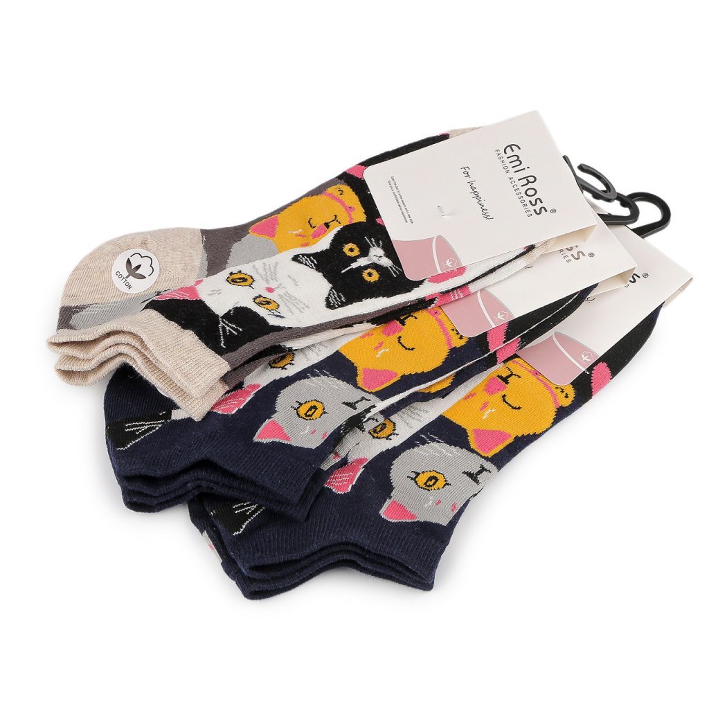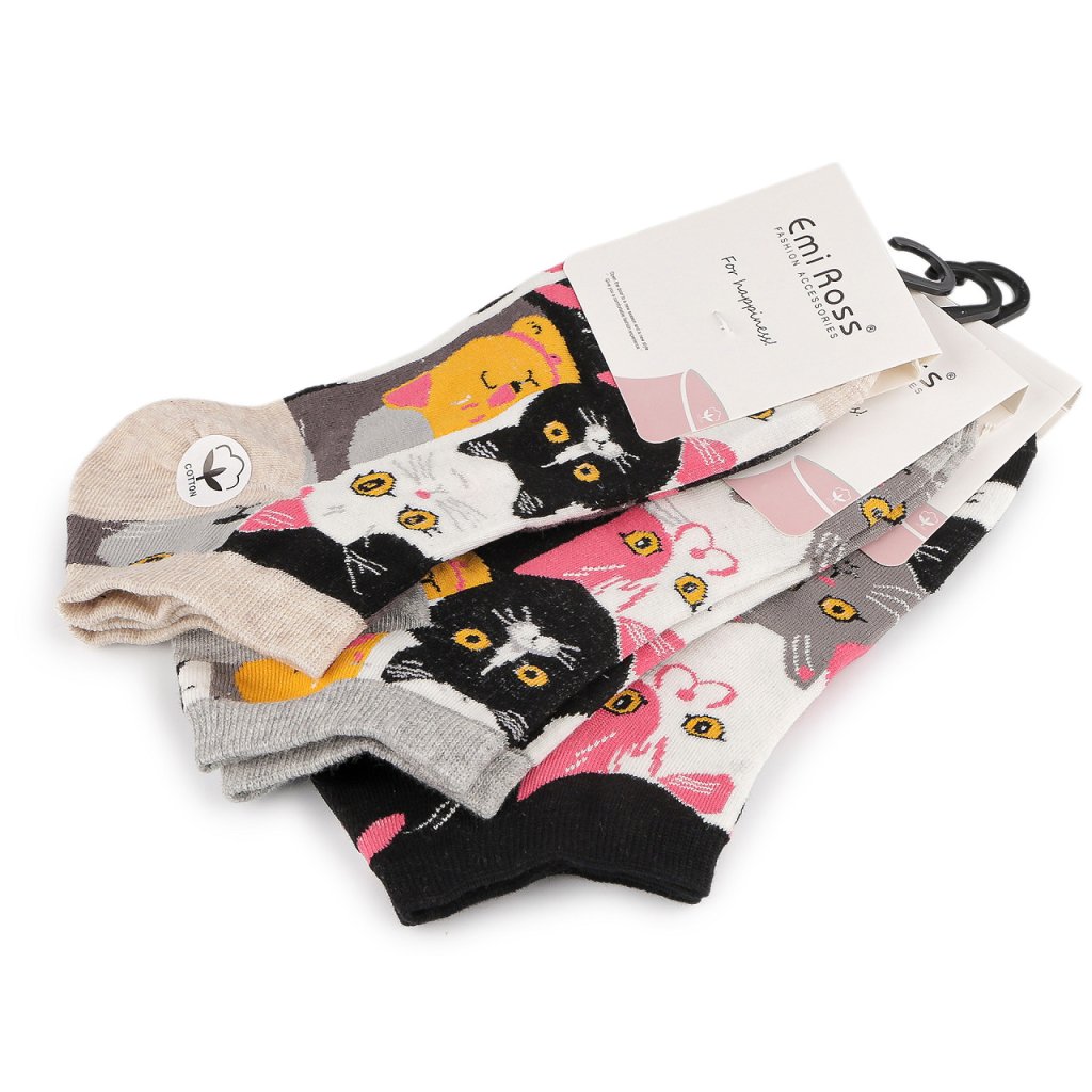Dámské bavlněné ponožky kotníkové kočky Emi Ross