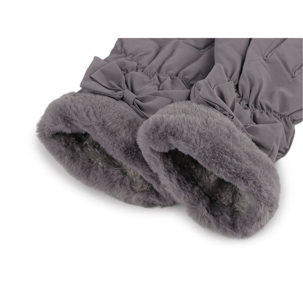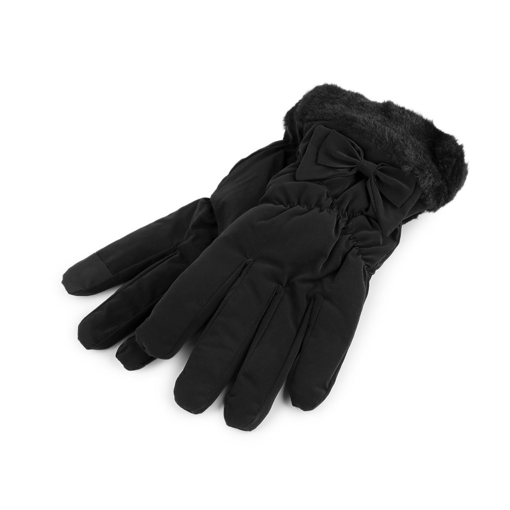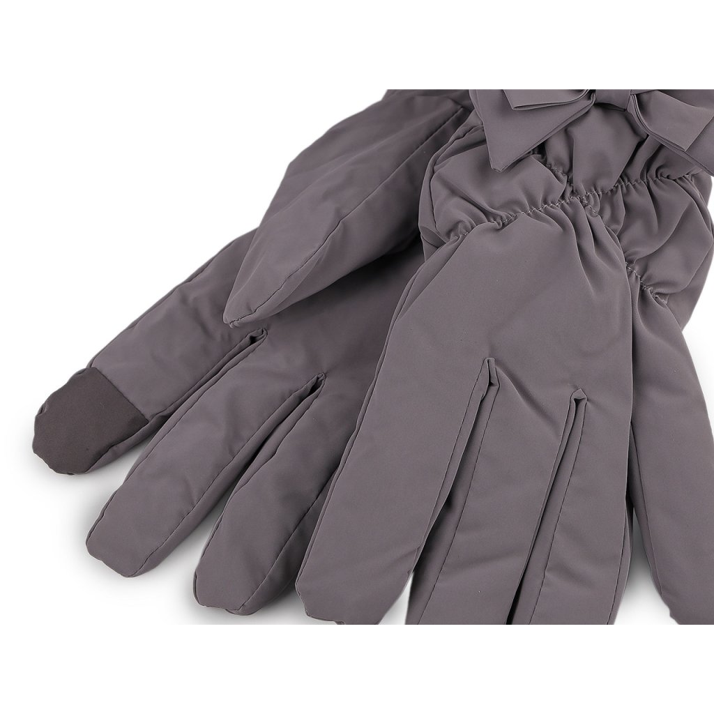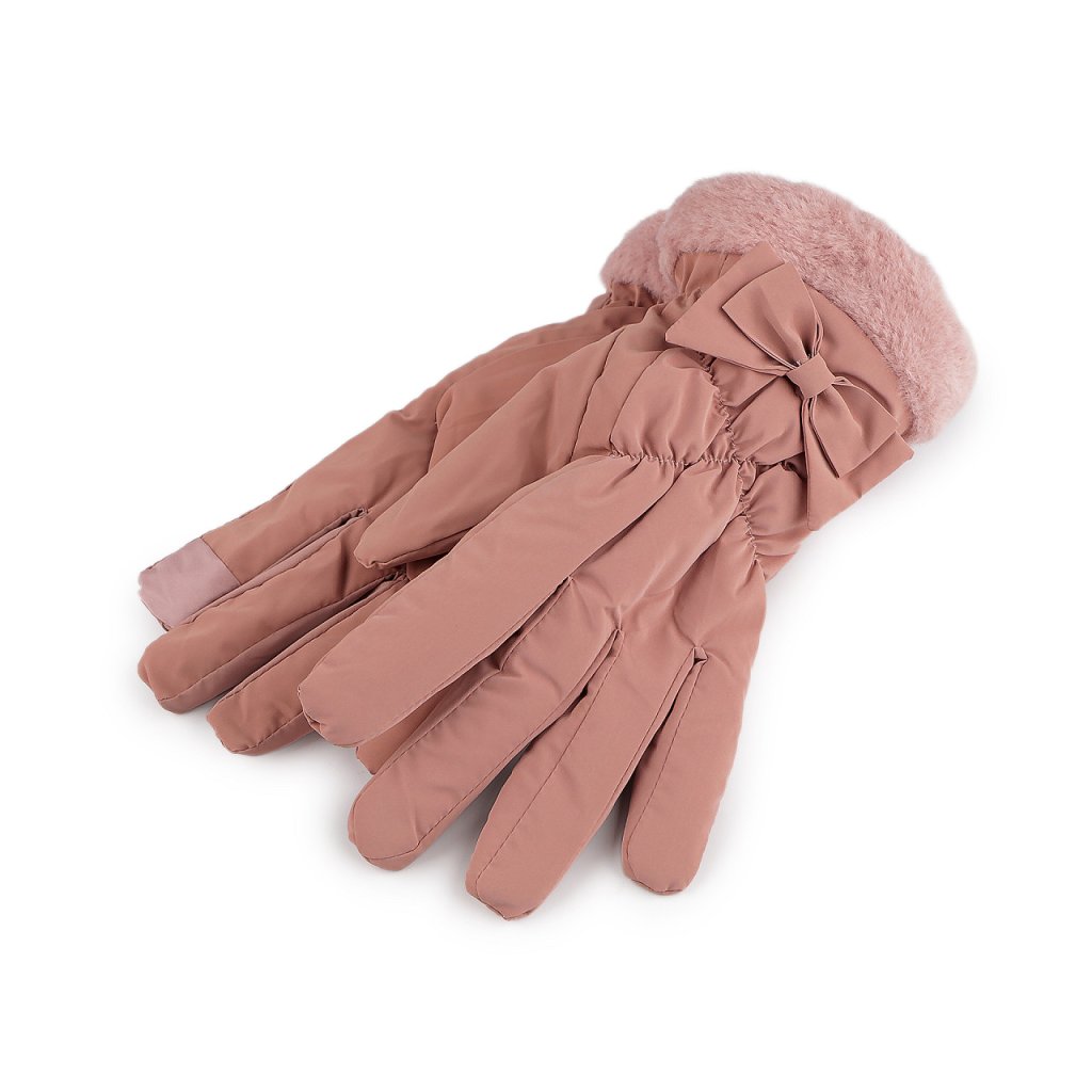 Elegantní šusťákové rukavice jsou ozdobené mašlí a lemem z umělé kožešiny. Využijete je ke sportovním bundám a vestám, ale hodí se i na běžné nošení ke kabátům. Na ukazováčku pravé ruky je speciální tkanina, díky které můžete ovládat dotykové přístroje - mobil, tablet, bankomat apod. Uvnitř mají plyšový kožíšek, který vás příjemně zahřeje. Jsou vhodné do zimy nebo do chladnějšího podzimního počasí.