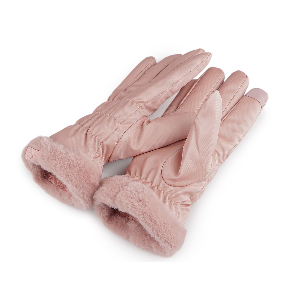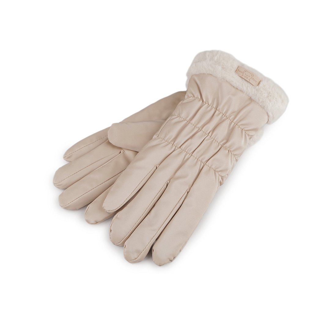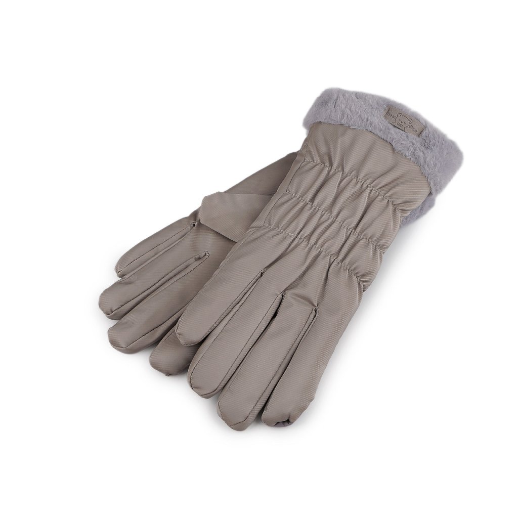 Elegantní šusťákové rukavice jsou ozdobené lemem z umělé kožešiny a štítkem z eko kůže s motivem medvídka. Využijete je ke sportovním bundám a vestám, ale hodí se i na běžné nošení ke kabátům. Na ukazováčku pravé ruky je speciální tkanina, díky které můžete ovládat dotykové přístroje - mobil, tablet, bankomat apod. Uvnitř mají plyšový kožíšek, který vás příjemně zahřeje. Jsou vhodné do zimy nebo do chladnějšího podzimního počasí.