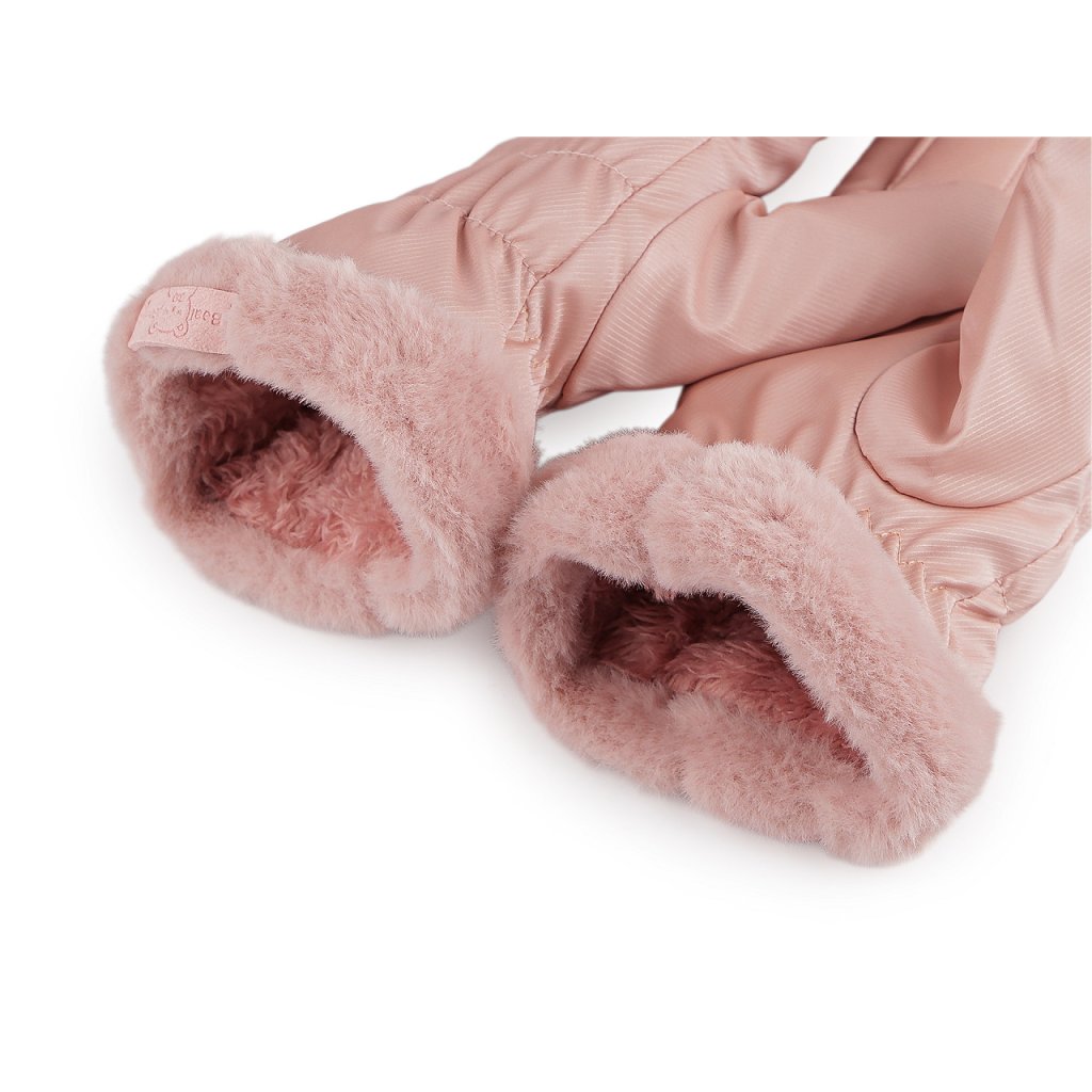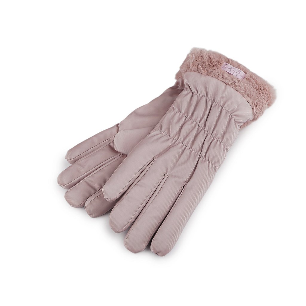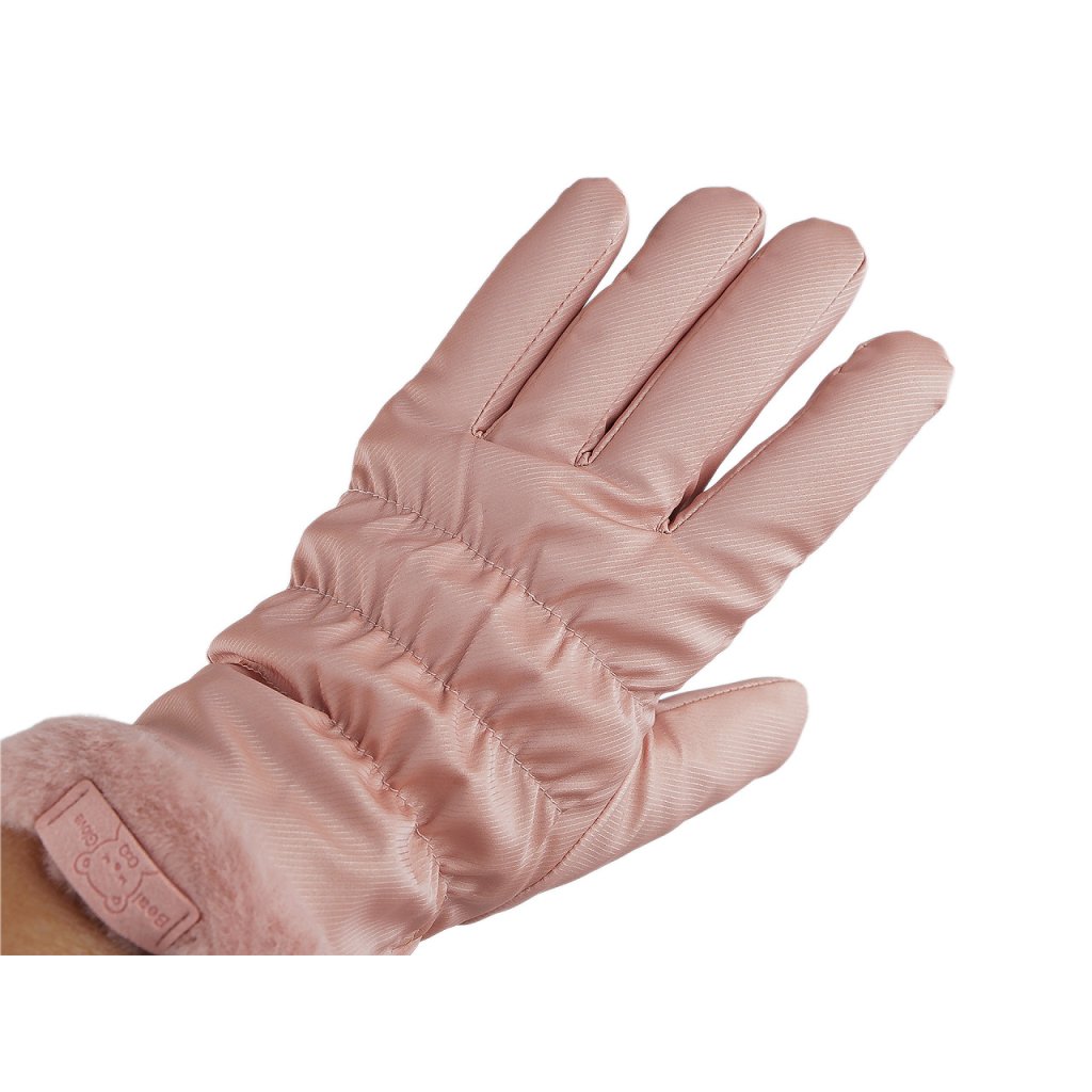 Elegantní šusťákové rukavice jsou ozdobené lemem z umělé kožešiny a štítkem z eko kůže s motivem medvídka. Využijete je ke sportovním bundám a vestám, ale hodí se i na běžné nošení ke kabátům. Na ukazováčku pravé ruky je speciální tkanina, díky které můžete ovládat dotykové přístroje - mobil, tablet, bankomat apod. Uvnitř mají plyšový kožíšek, který vás příjemně zahřeje. Jsou vhodné do zimy nebo do chladnějšího podzimního počasí.