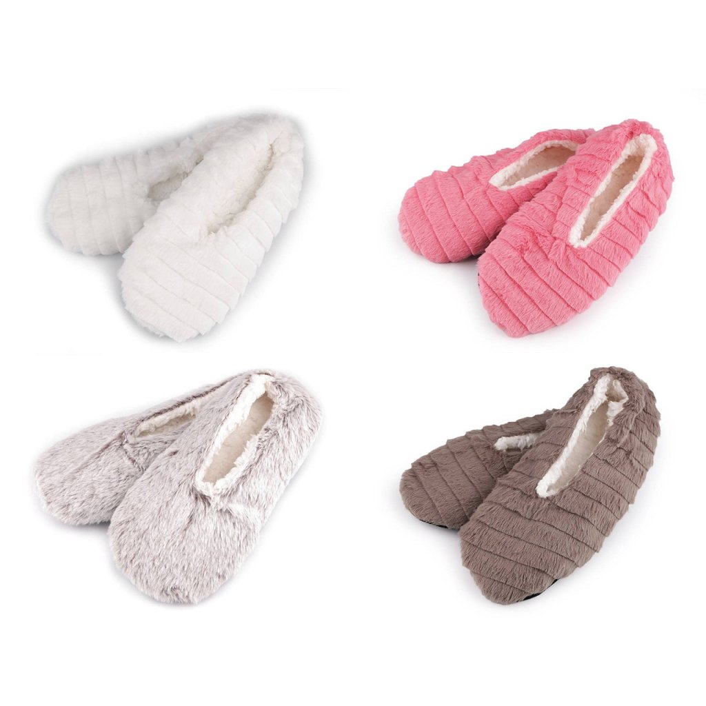 Dámské balerínky jsou skvělé jako domácí obuv. Jsou heboučké, z vrchní strany mají umělou kožešinu, uvnitř je teplá chlupatá podšívka, která věrně imituje vlnu. Protiskluzové gumové tečky na chodidle zabrání uklouznutí.