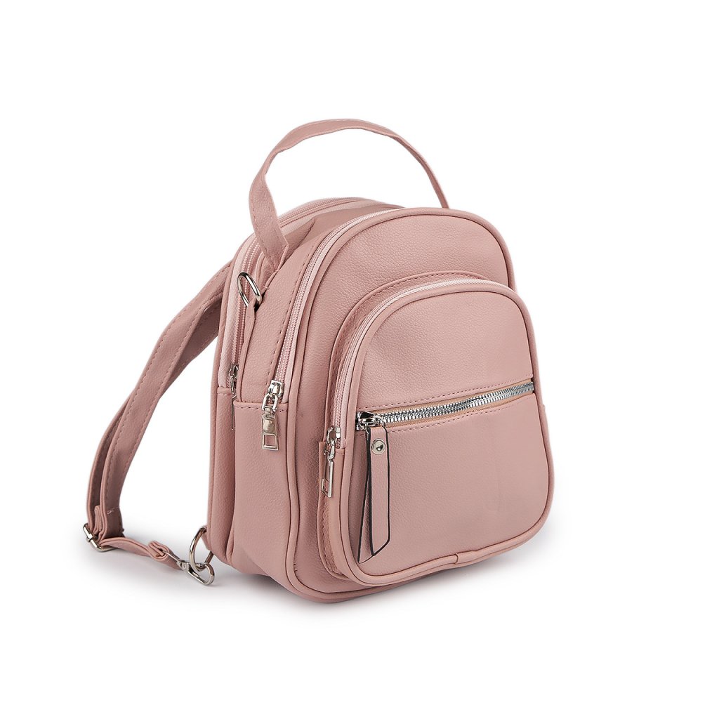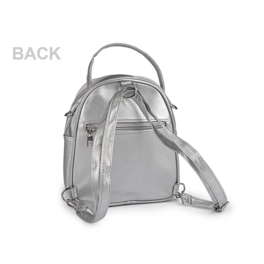 Hlavní kapsa je na zip, obsahuje vnitřní kapsičku na uložení plochých předmětů. Za hlavní kapsou je další kapsa, která obsahuje vnitřní kapsičku na zip na drobnosti či mobil. Na přední straně batohu jsou 2 kapsy, které se také uzavírají na zip. Na zadní straně batohu je umístěná poslední malá kapsa na zip. Ucho je pevné, krátké do ruky či na pověšení. Popruh je dostatečně dlouhý s možností regulace. Slouží na nošení klasického batohu nebo jej můžete pomocí karabin přecvaknout do průvleků na vrchní straně batohu. Pak se dá nosit křížem jako crossbody kabelka.