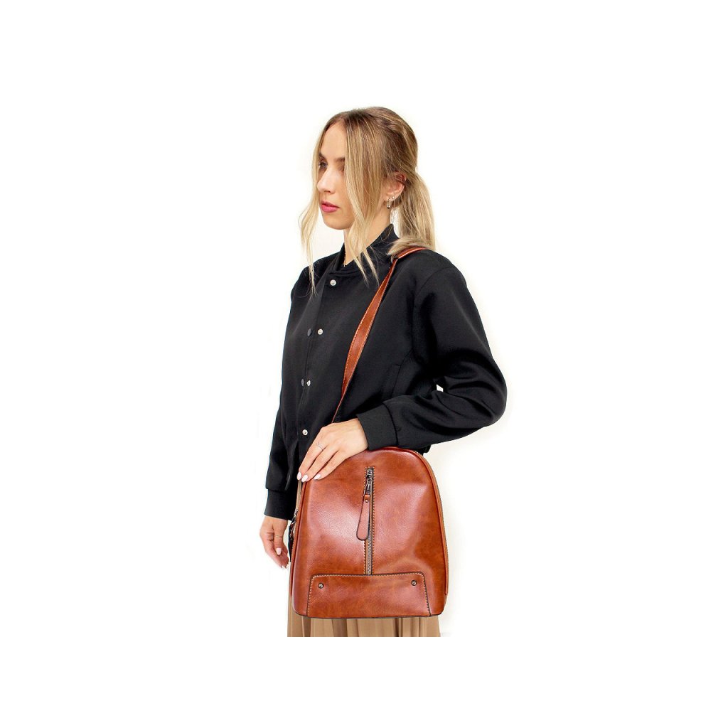 Stylový městský batoh ozdobený zipem se dá lehce přeměnit na crossbody kabelku. Skvěle doplní váš outfit. Díky syntetického materiálu, který vypadá jako kůže, má batoh punc kvality i vkusné originality. Je ideální na nošení do města, kanceláře i na výlety.