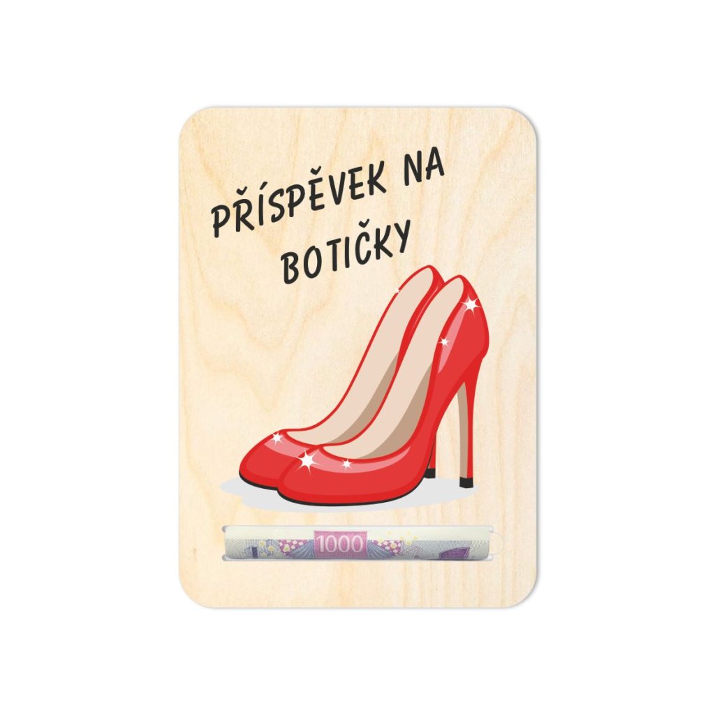 Na přední straně karty je potisk s krásným motivem botiček, který byl aplikován pomocí digitálního UV tisku, což zajišťuje, že barvy zůstanou syté a živé.
