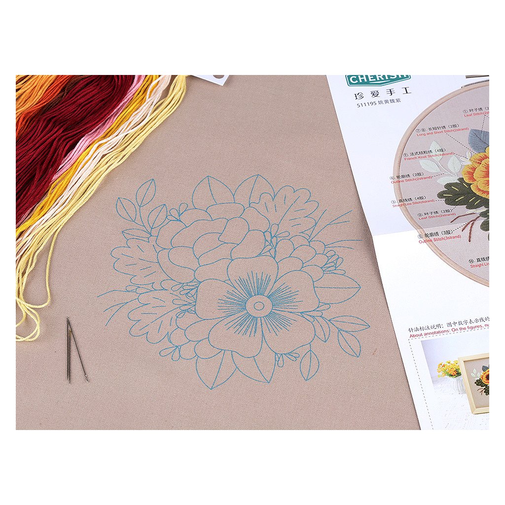 Se sadou na vyšívání vytvoříte zajímavé a efektní obrazy kytic. Vyšívá se na předtištěnou tkaninu pomocí příze mouline.