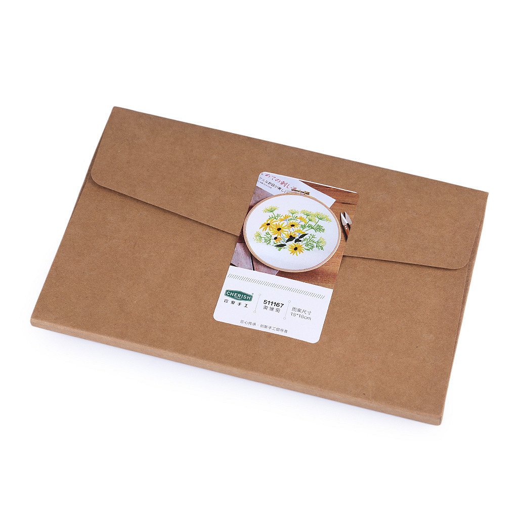 V sadě najdete tkaninu s předlohou, sadu barevných přízí, obrázkový návod a vyšívací jehly.