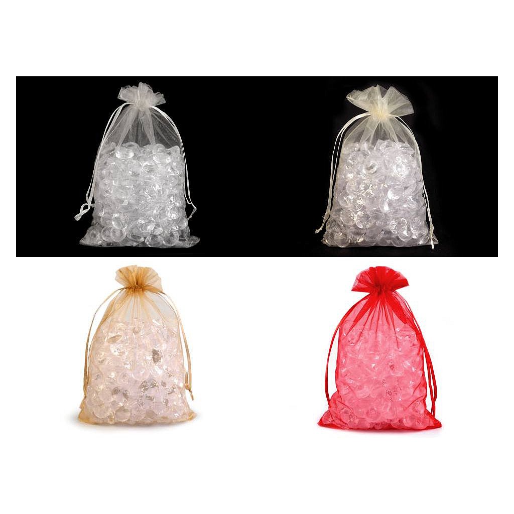 Dárkový pytlík je vyrobený z organzy, jeho povrch se jemně leskne. Snadno se uzavírá pomocí dvou stahovacích saténových šňůrek.