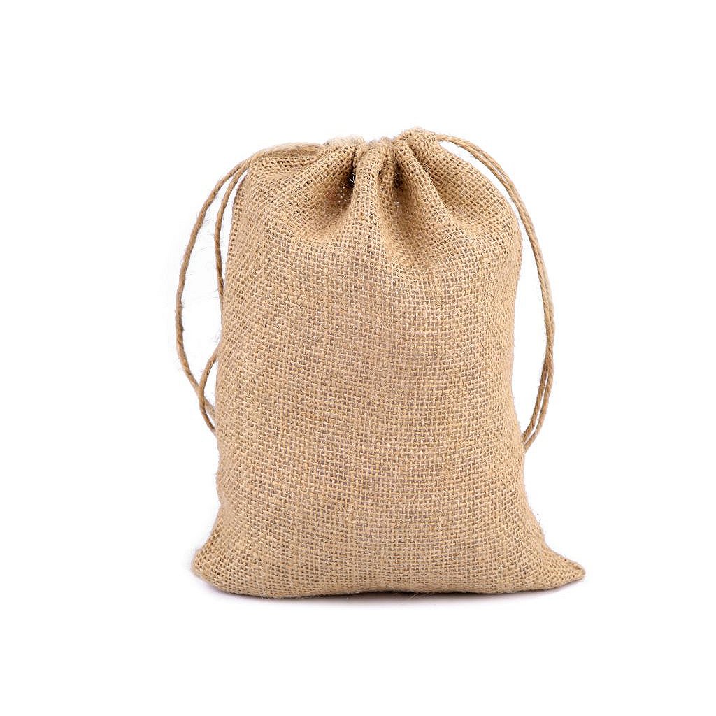 Jutový pytlík se snadno zavírá pomocí dvou stahovacích šňůrek.