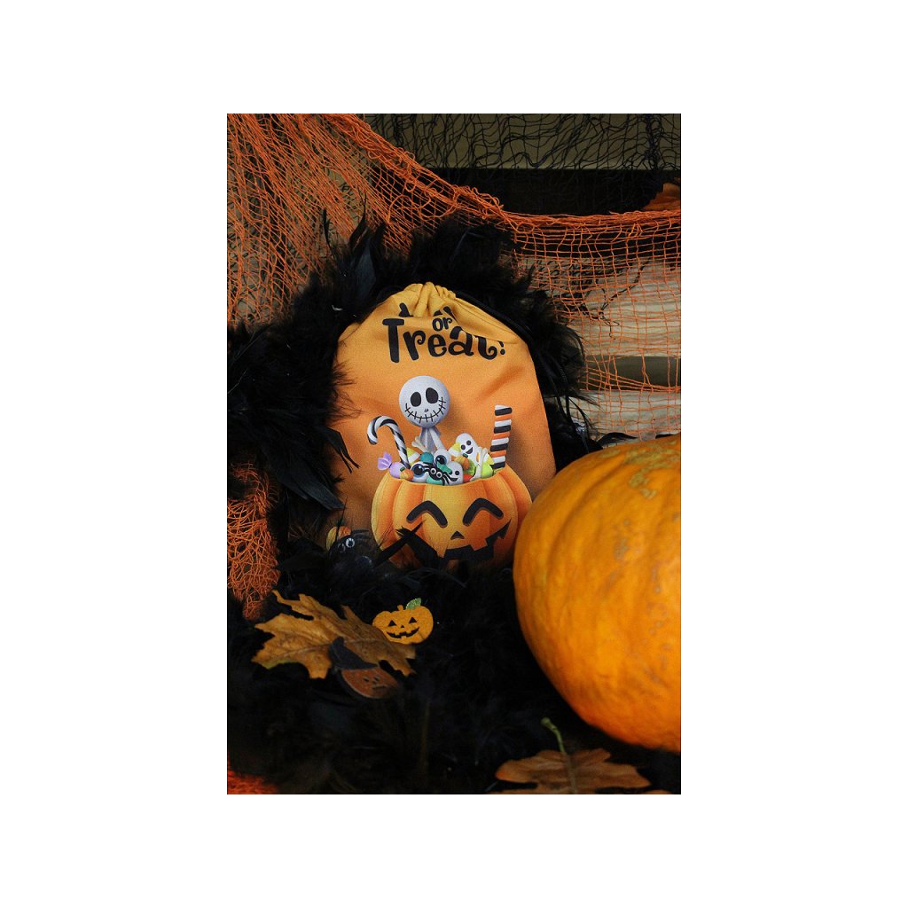 Textilní halloweenský pytlík je ideální pro balení malých dárků, sladkostí nebo halloweenských překvapení. Snadno se uzavírá pomocí dvou stahovacích šňůrek. Poutavý oboustranný design dodá jakémukoliv dárku či dekoraci ten správný strašidelný nádech.