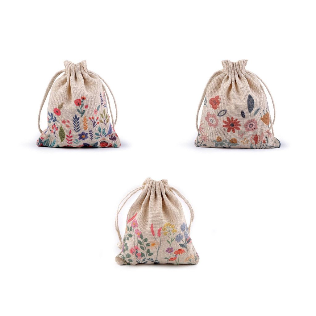 Dárkový pytlík jarní 10x13 cm lněný s květy