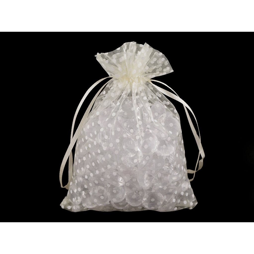 Dárkový pytlík z organzy zdobí potisk puntíků. Snadno ho uzavřete pomocí dvou stahovacích saténových šňůrek. Pytlík je vhodný na zabalení dárků, můžete do něj uschovat vaše osobní poklady nebo naaranžovat voňavé sušené květy.