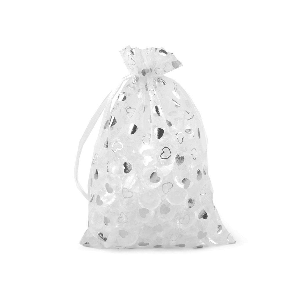 Dárkový pytlíček o rozměru cca 140 x 210 mm z kvalitní organzy s lesklými srdíčky. Pytlíky jsou vhodné k balení menších dárečků, pro které je papír škoda. Organzové pytlíky povýší dárek na vyšší úroveň, obdarovaný bude mít nefalšovanou radost, kterou přenese na ostatní gratulanty. Pytlíky jsou baleny po jednom kuse a jsou k dostání ve stříbrné barvě.