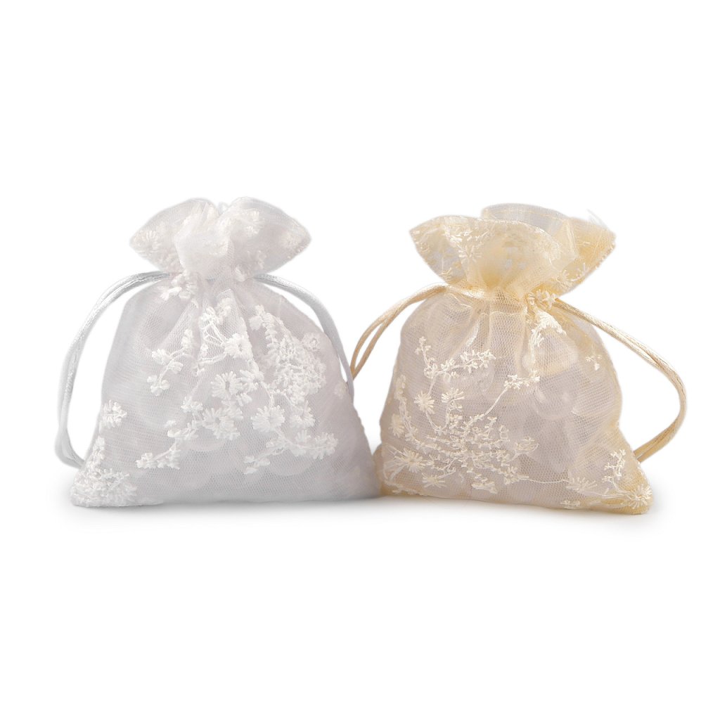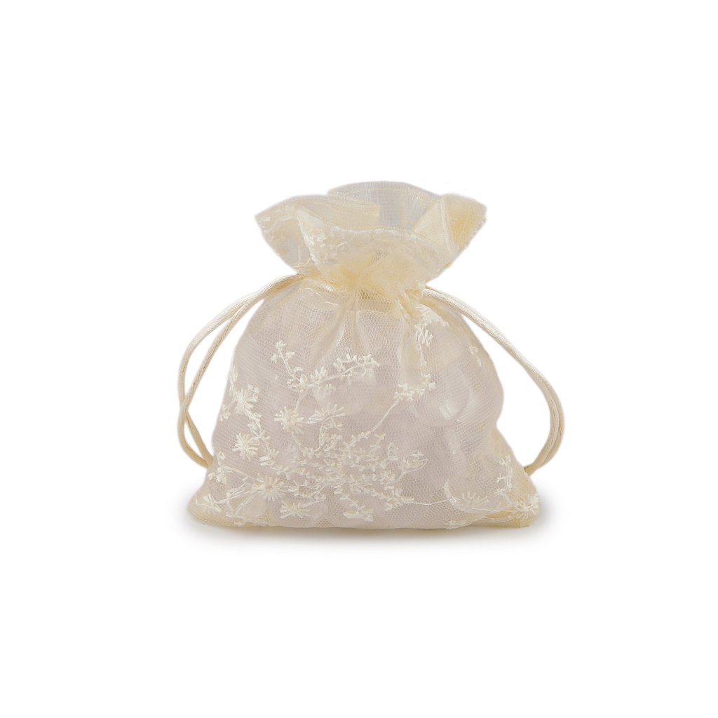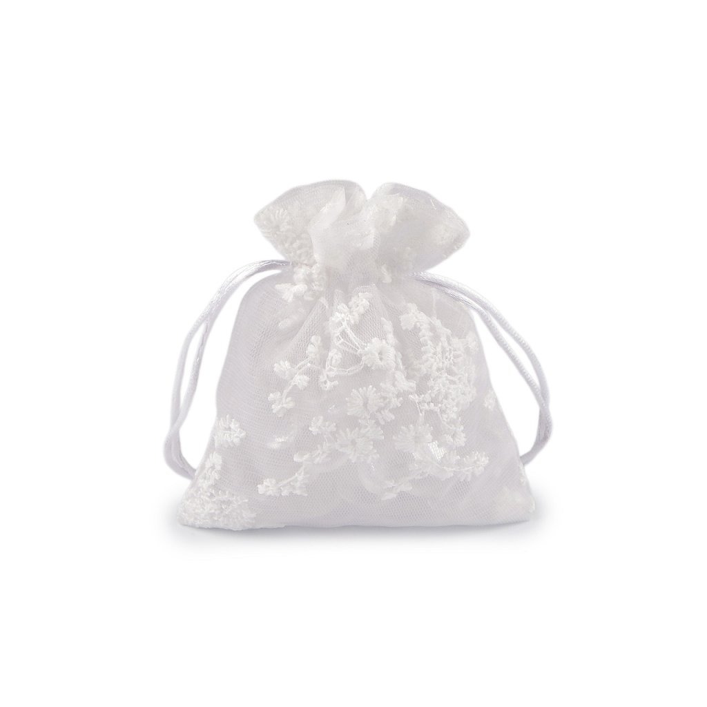 Dárkový pytlík z organzy zdobí strojová výšivka květů. Působí luxusním dojmem, hodí se k zabalení menšího dárku, který povýší na vyšší úroveň. Snadno ho uzavřete pomocí dvou stahovacích saténových šňůrek. Pytlík je vhodný na zabalení dárků, ale můžete do něj uschovat i vaše osobní poklady nebo naaranžovat voňavé sušené květy.