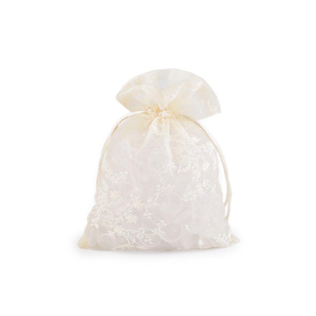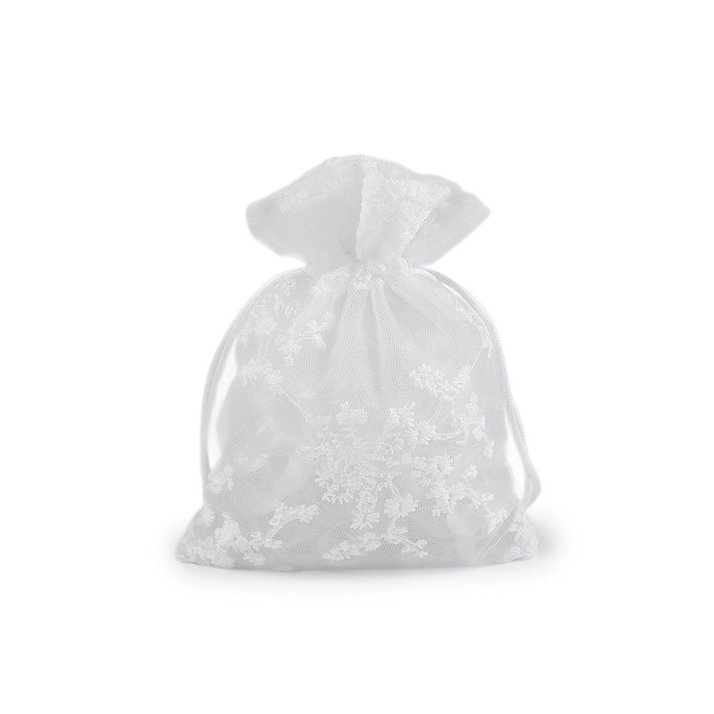 Dárkový pytlík z organzy zdobí strojová květinová výšivka. Působí luxusním dojmem, hodí se k zabalení menšího dárku, který povýší na vyšší úroveň. Snadno ho uzavřete pomocí dvou stahovacích saténových šňůrek. Pytlík je vhodný na zabalení dárků, ale můžete do něj uschovat i vaše osobní poklady nebo naaranžovat voňavé sušené květy.