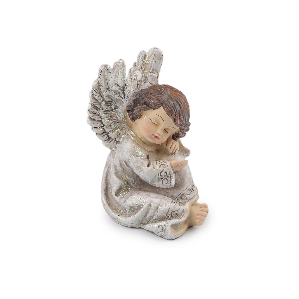 Soška anděla je jemně posypaná třpytivými glitry a má působivě propracované detaily. Do domova vnáší klid a harmonii.