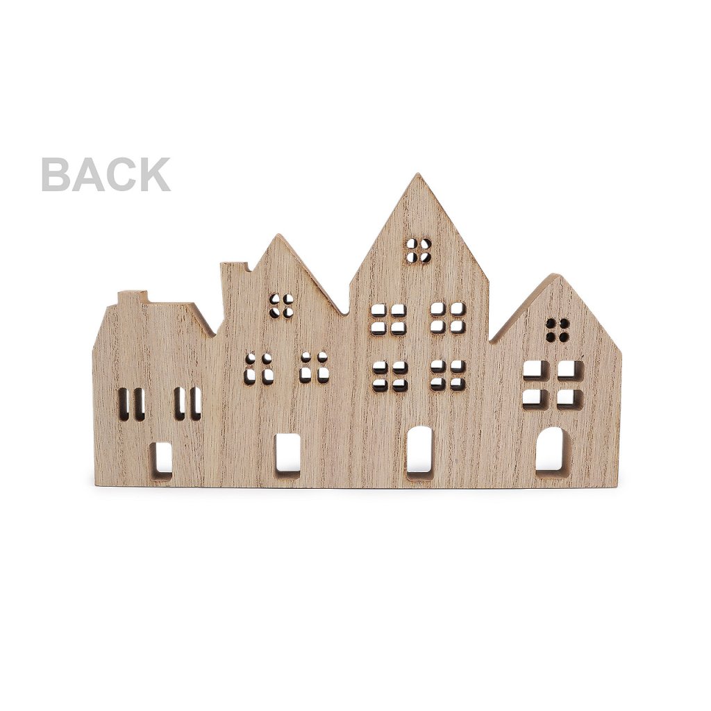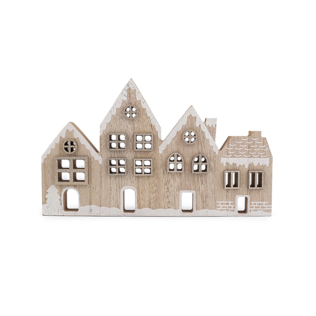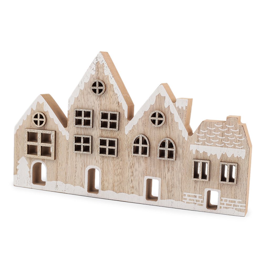 Dřevěné dekorační domečky vyniknou jako stylová zimní dekorace. Můžete je umístit na krbovou římsu, okenní parapet, poličku nebo je dát jako dominantu sváteční tabule. Mají zajímavě zpracované detaily v podobě malby a třpytivých oken.